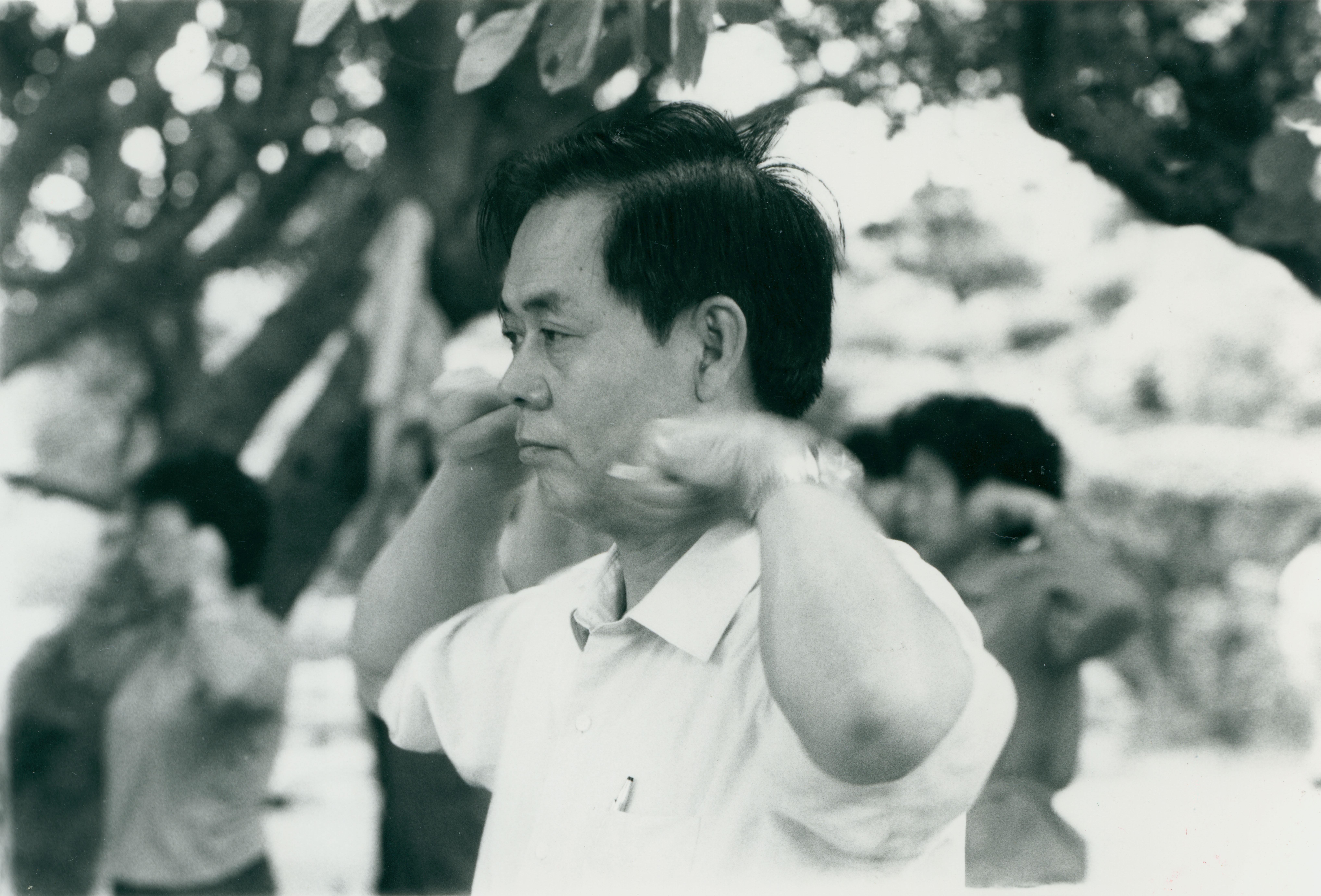 只要你注意觀察,每天清晨在公園、校園或運動場,都可看到成群的練功者,和號稱「鐵三角」——負責講述、示範、巡行指導的三個教練。