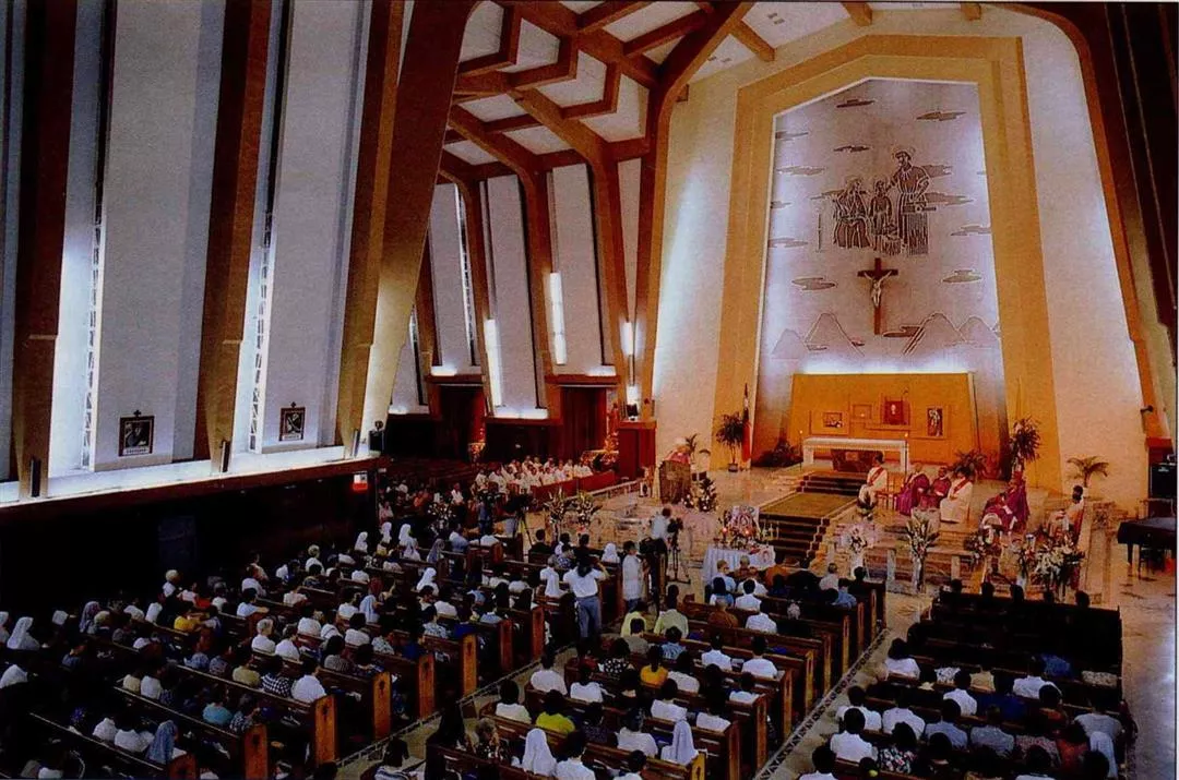 還是早期眷村聚落形態的台南二空新村,低矮的房舍櫛比鱗次,南台灣的陽光熾熱,早上市場人潮沸騰,相較之下,處身其中、院落寬廣的聖母升天堂就顯得格外清涼安謐。