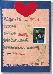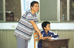 去年底,校長指定他指導學生參加全縣英語話劇比賽,王明德刻意挑選一些單親或學習意願低的孩子,希望藉這個機會,引發他們學英文的興趣。比如一位英文常考零分的學生,王明德給了他一個對白不多的角色,讓他硬背下幾句台詞。