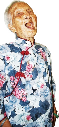 想法率真的老人家,常像小孩子一樣可愛,見到記者來訪,只剩下一顆牙的盧郭簡笑得好開心,還特別換上今年7月接受縣長周錫瑋表揚時所穿的荷花旗袍,並秀了一手「高超」的牌技。