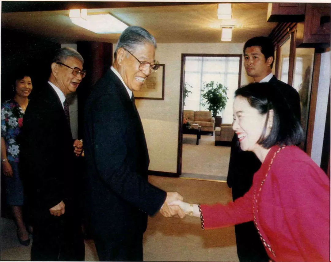 資深新聞記者寫政治人物,靠的是多年來與政壇人物的交往與認識。圖為李總統參觀聯合報時,與當時任採訪主任的周玉蔻合影。(周玉蔻提供)