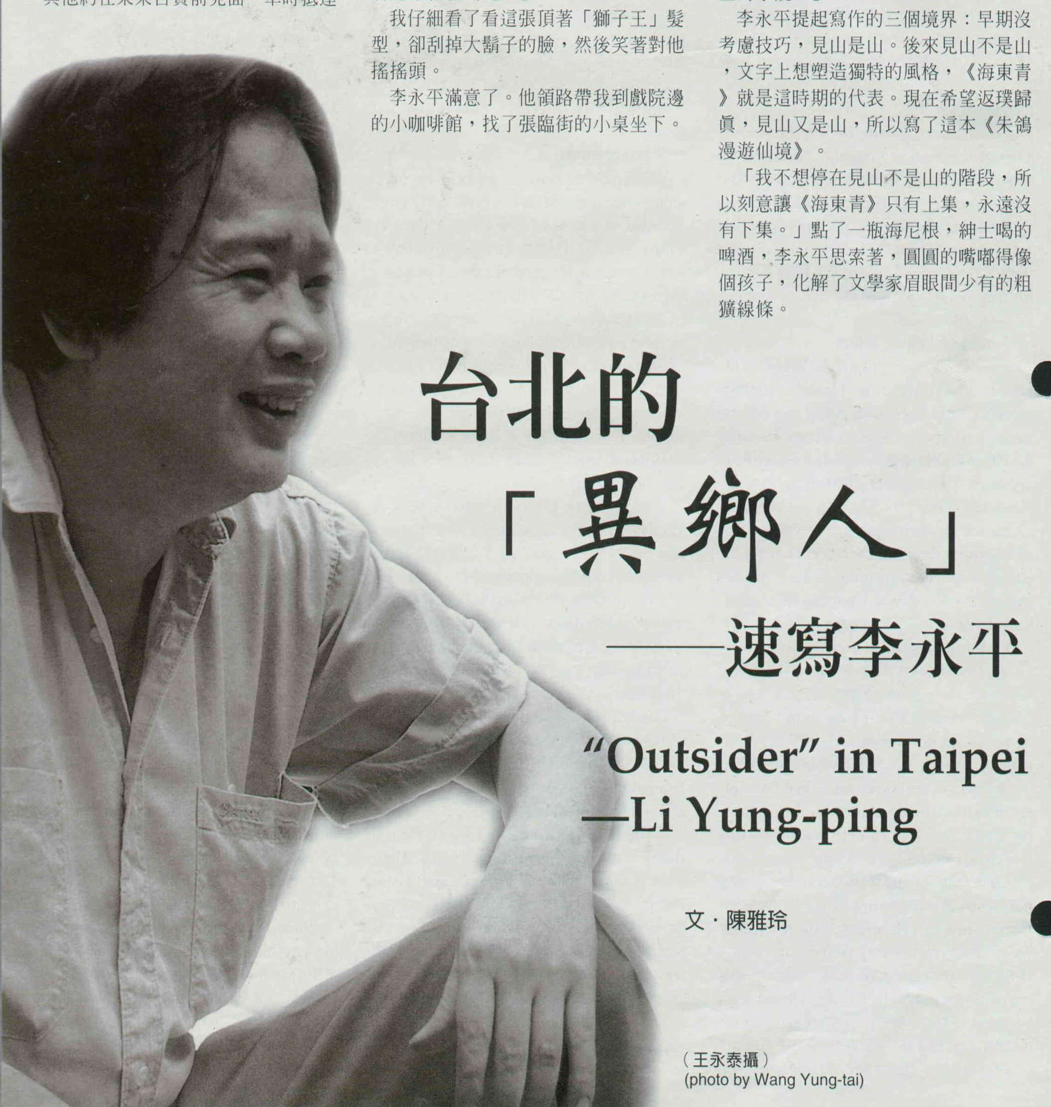 「我不想停在見山不是山的階段,所以刻意讓《海東青》只有上集,永遠沒有下集。」點了一瓶海尼根,紳士喝的啤酒,李永平思索著,圓圓的嘴嘟得像個孩子,化解了文學家眉眼間少有的粗獷線條。