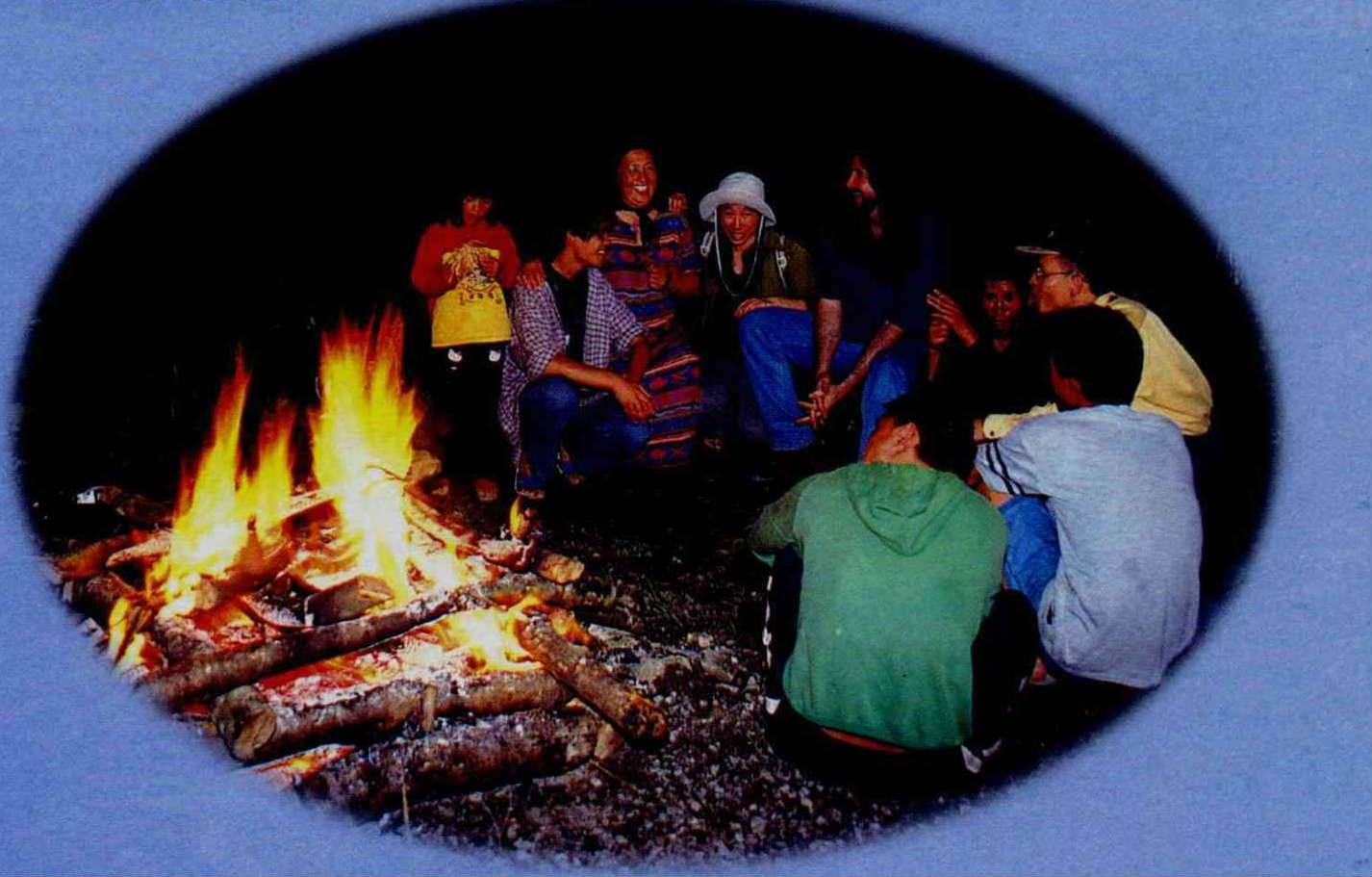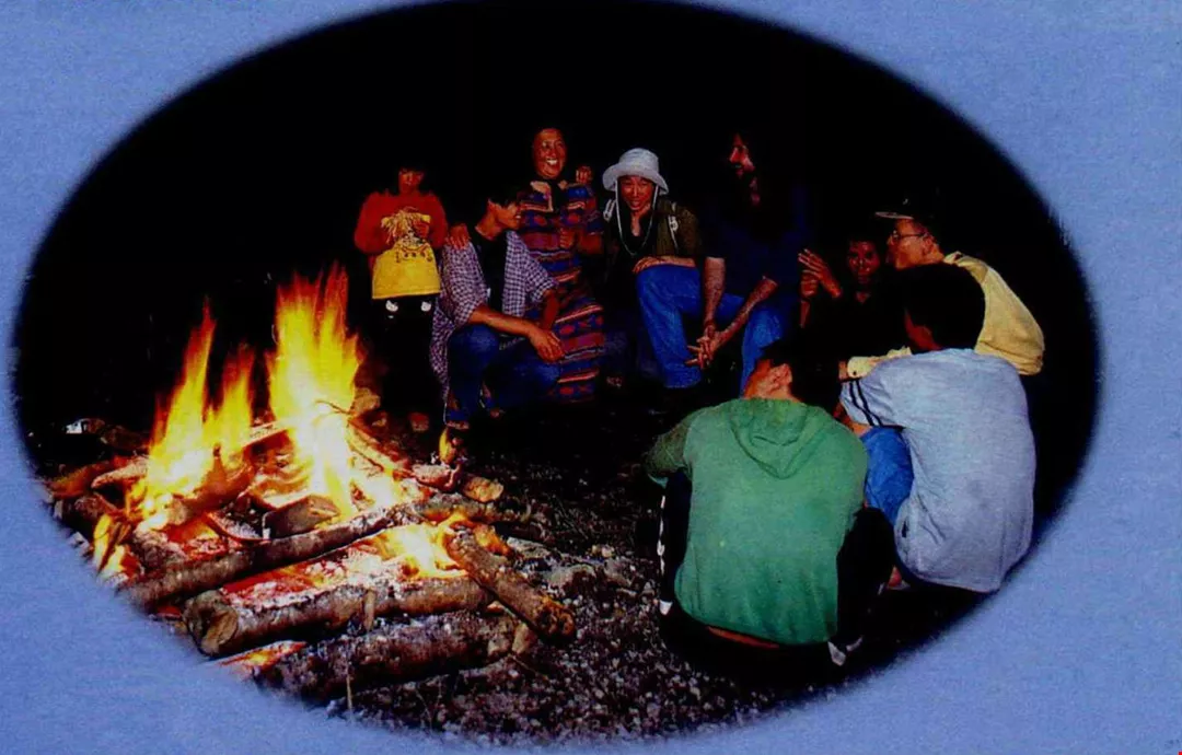 馬修的音樂中常採集原住民的聲音。他認為無論是加拿大的育空還是台灣,原住民的生活因貼近自然,可以給我們許多啟示。圖為馬修八月間來台時到新竹尖石鄉錄影時與泰雅族鄉民開營火晚會對唱。(邱瑞金)