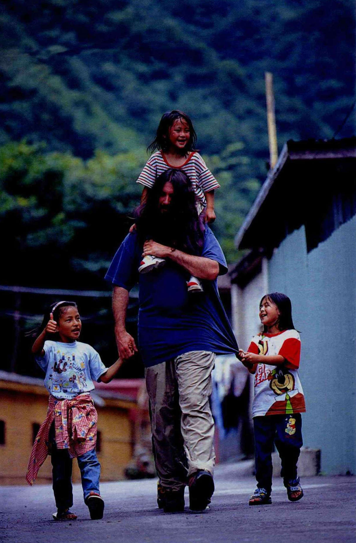 「大鬍子叔叔,不要走好嗎?」「沒關係,叔叔帶你們一塊兒回去!」馬修的尖石鄉一行有著太多的不捨。(邱瑞金)