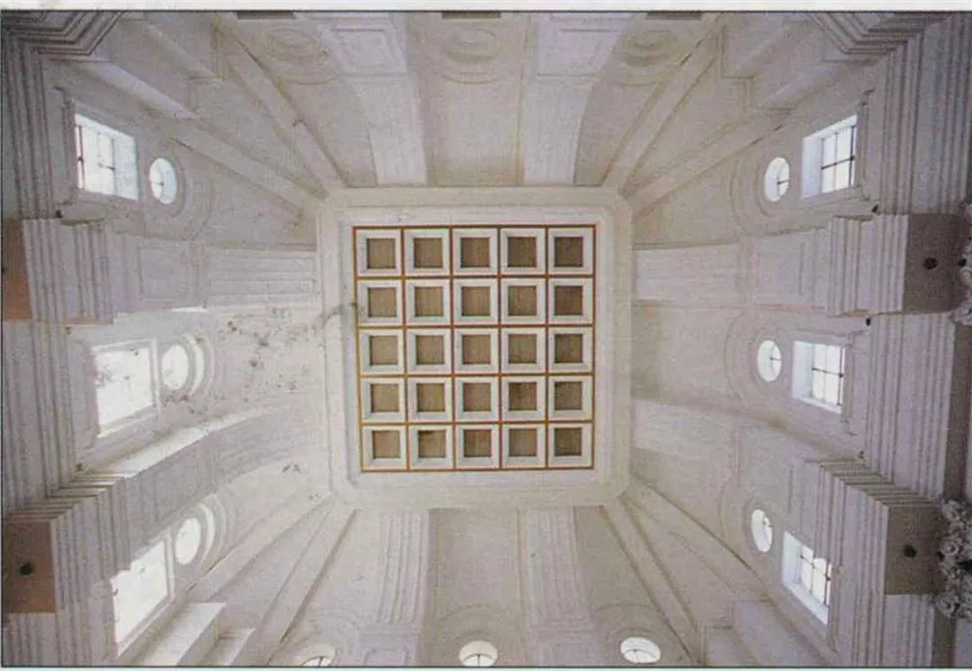 後敞廳挑高約有四層樓的高度,散狀圓弧的屋頂設計可集中音效。(薛繼光攝)