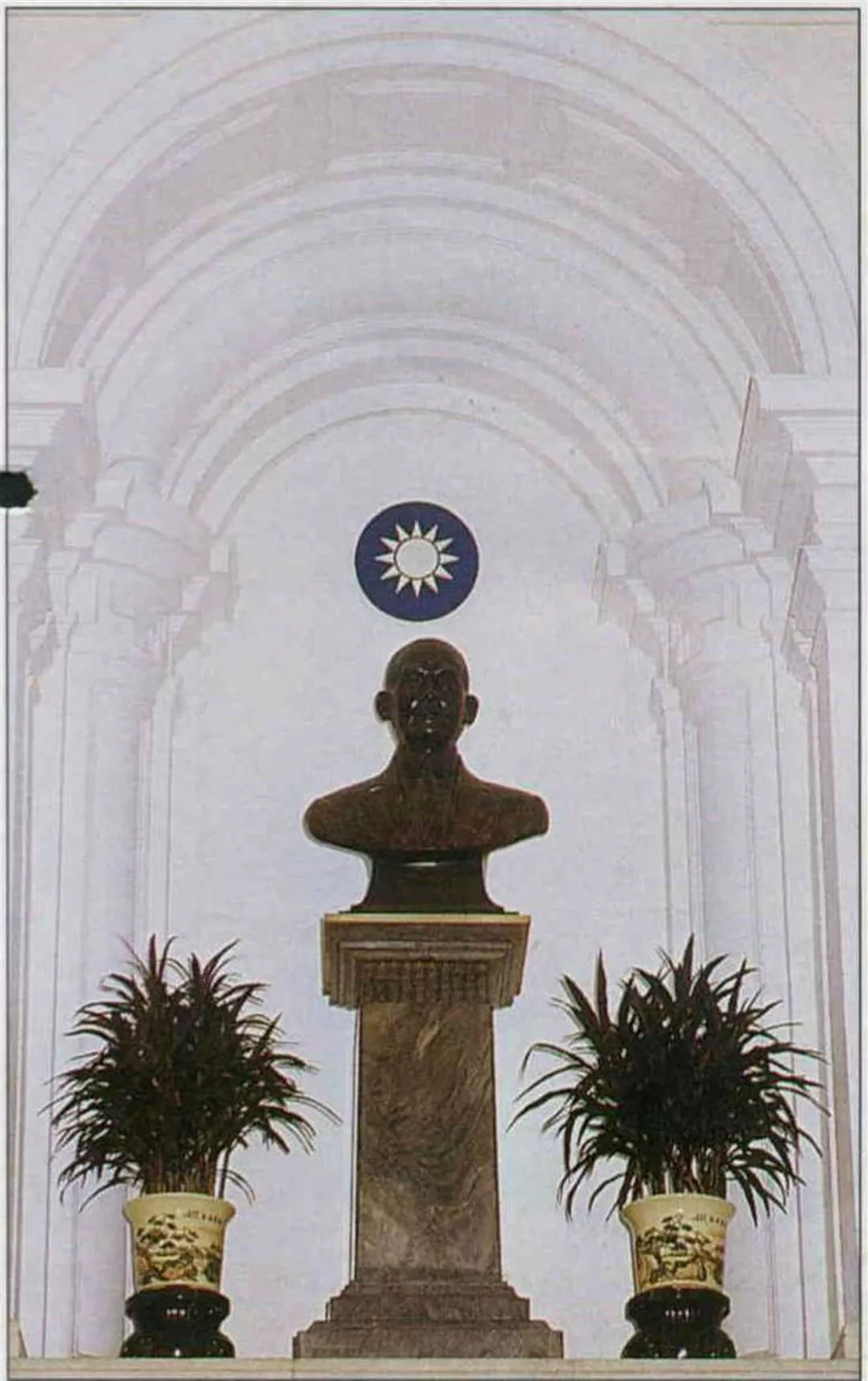 中華民國開國領袖孫中山先生的銅像高踞Y字梯正中央。(薛繼光攝)