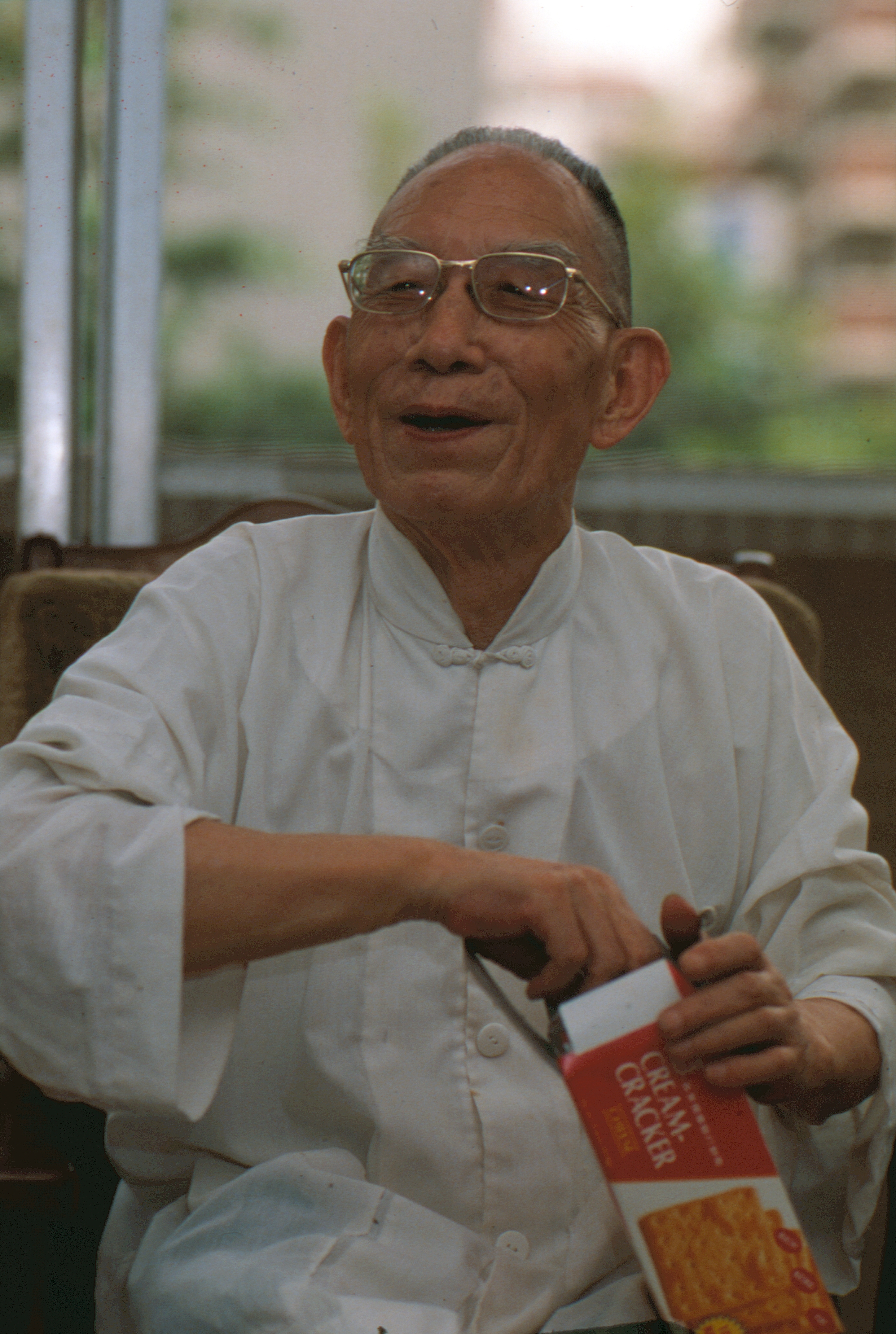 居家、散步、赴宴,甚至到了機場,一襲素白唐式薄衫,就解決了他所有穿衣的問題;一般人刻板的印象,總認為學者的書房應該是滿室書香,他的書架上卻連自己寫的書都沒擺齊,零星幾本散在一旁,「逃難嘛!不帶這麼多書」,老先生的詼諧,卻透露出台港兩地講學、奔波,居無定所之感。