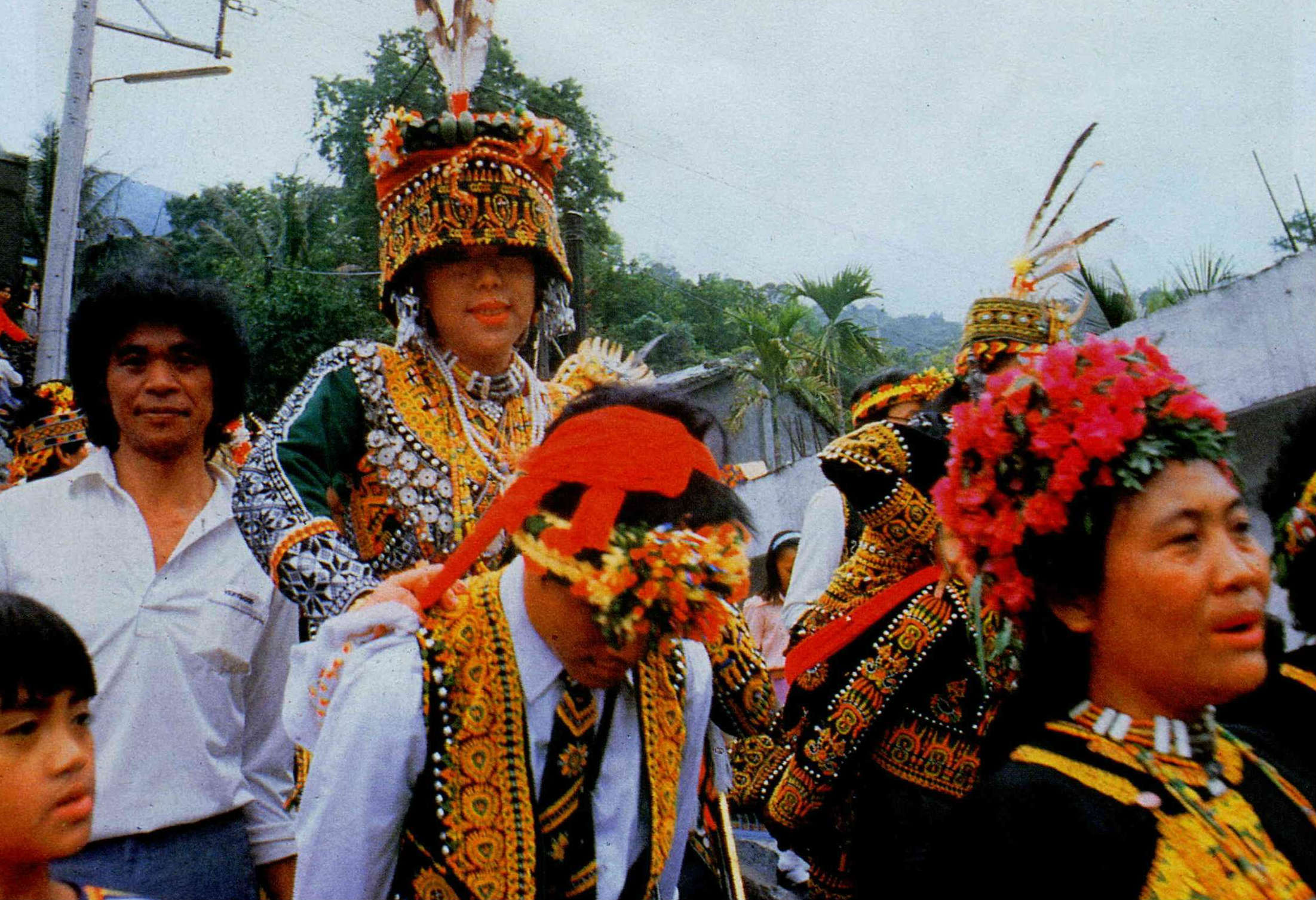 由於大部分的先住民都信教,結婚時宗教儀式大概是少不了的。通常他們會在出了教堂之後,換上傳統服裝,再依照傳統方式,徹夜唱歌、跳舞。梁景龍出身貴族,擔任的牧師工作又很受族人敬重,所以在教堂婚禮之後,緊接著又鄭鄭重重地舉行傳統婚禮。