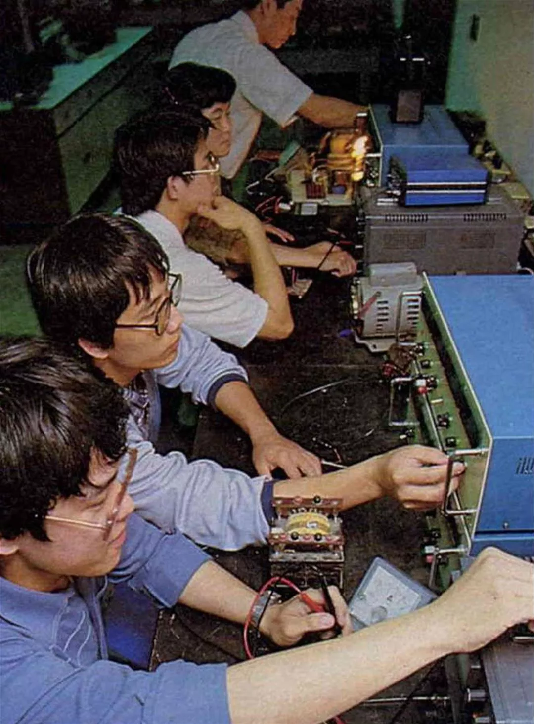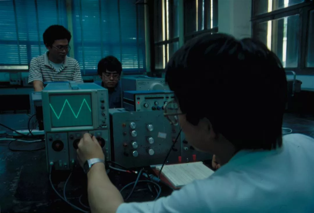 圖6.8.9:清大學生的實驗課程份量很重,圖為學生操作電子、電工等儀器實驗的情形。