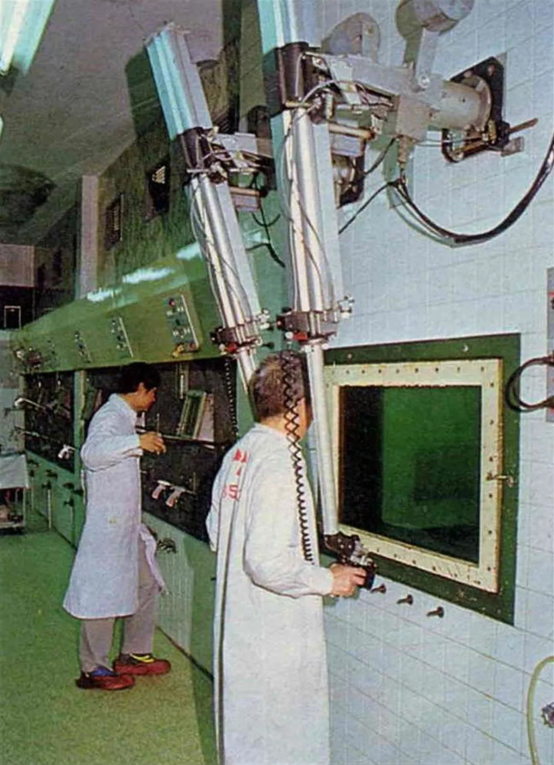 圖10:技術員透過鉛牆、鉛玻璃的安全阻隔,以儀器製造放射性同位素。(楊永山)
