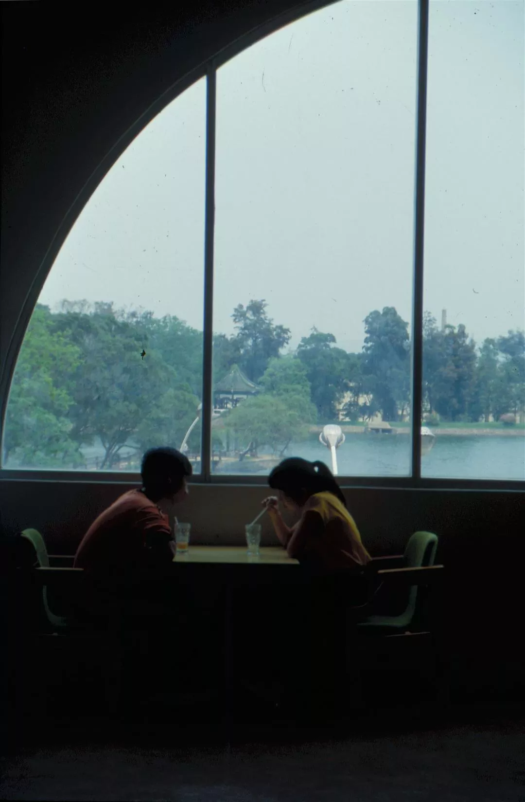 圖7:自冷飲室的拱形玻璃窗外望,一片碧水、綠樹,令人心曠神怡。