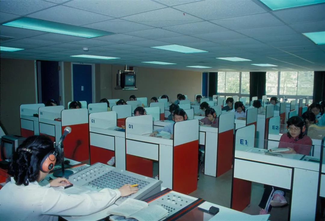 圖7:學生在視聽教室接受語言訓練。(楊永山)