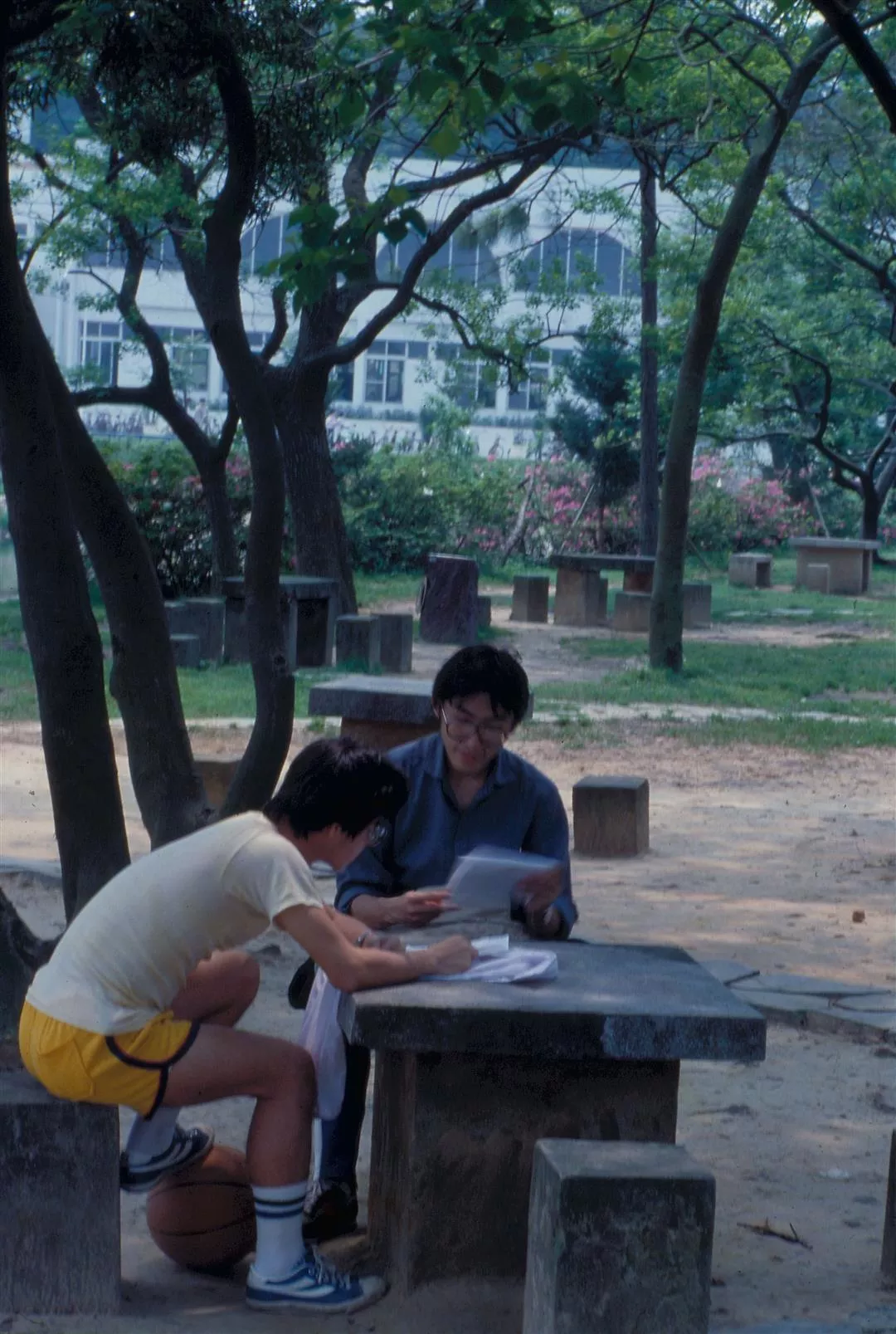 3:樹蔭下的石桌、石椅,常有學生在此研討功課。(楊永山)