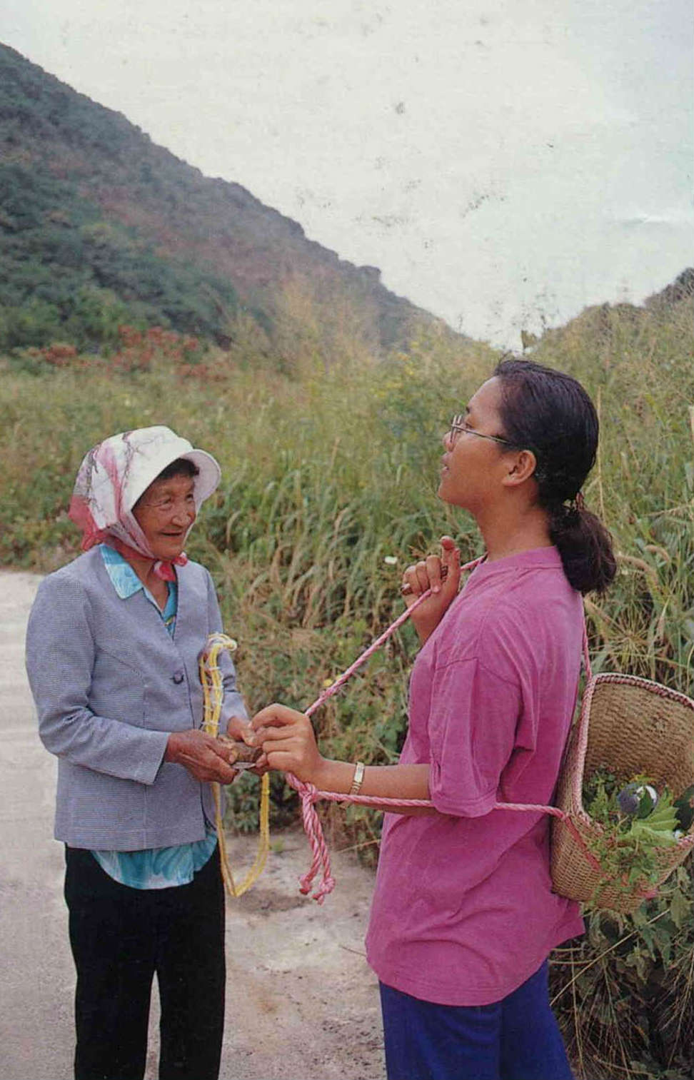 劉炯錫、潘世珍跟著獵人上山採集,獵人現場演出,將山芙蓉枝條樹皮剝開,以裡層的黃綠色樹皮,製成一公分寬、厚,長五怳膜尷滷a子,兩人使勁力拉不斷,山芙蓉至今仍被居民用來綁小米穗,防止散落。
