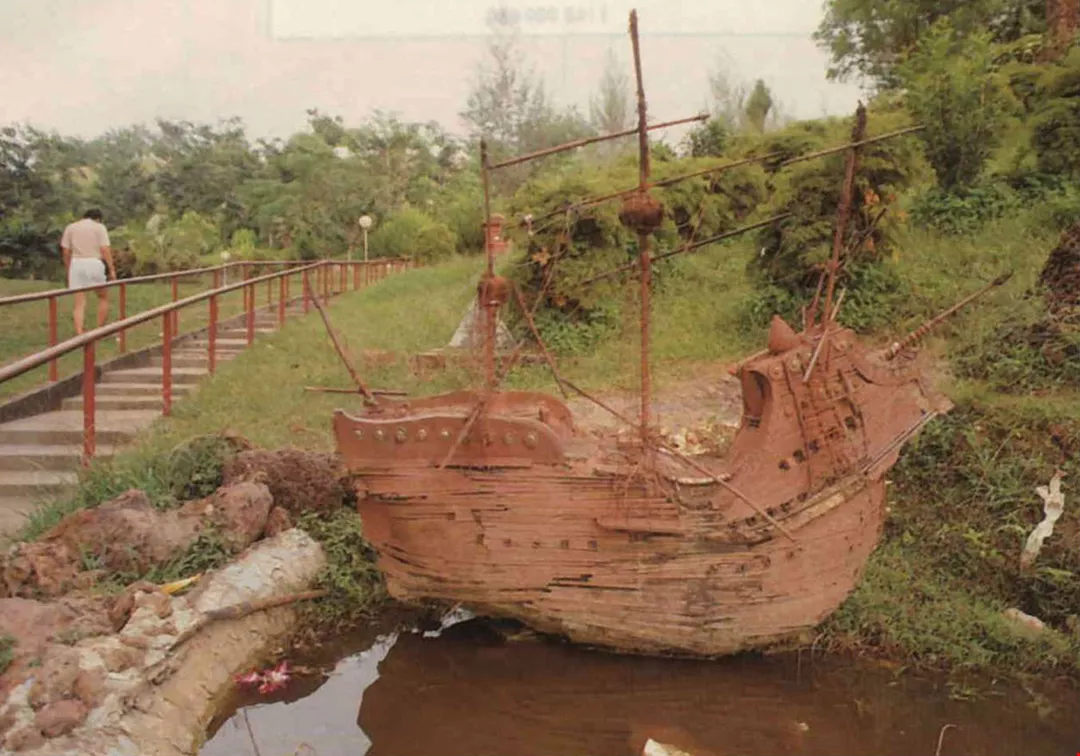 馬來西亞古城麻六甲市中心的三保山,相傳是三保太監鄭和下南洋時的軍隊駐紮地,至今仍可看到仿鄭和乘坐的「寶船」遺跡。(邱瑞金攝)(邱瑞金攝)