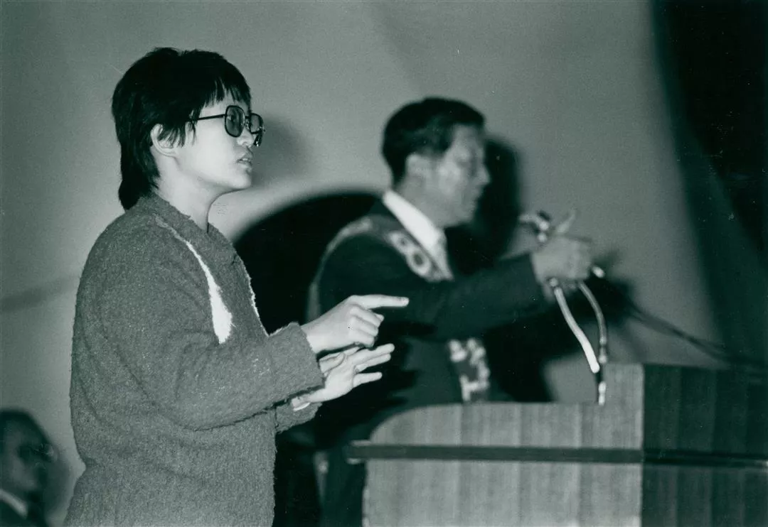 左圖:有位候選人替失聰的選民設想周到,請人在政見會上做手語翻譯。(本刊攝影小組)