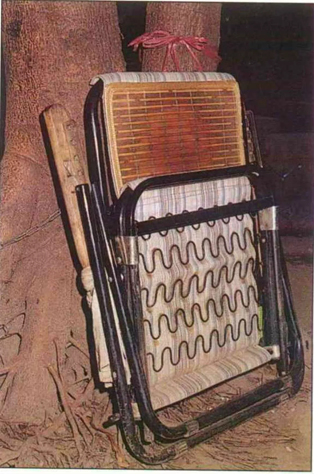 公園也有人「佔位子」,乾脆把自家的躺椅鎖在大樹上。