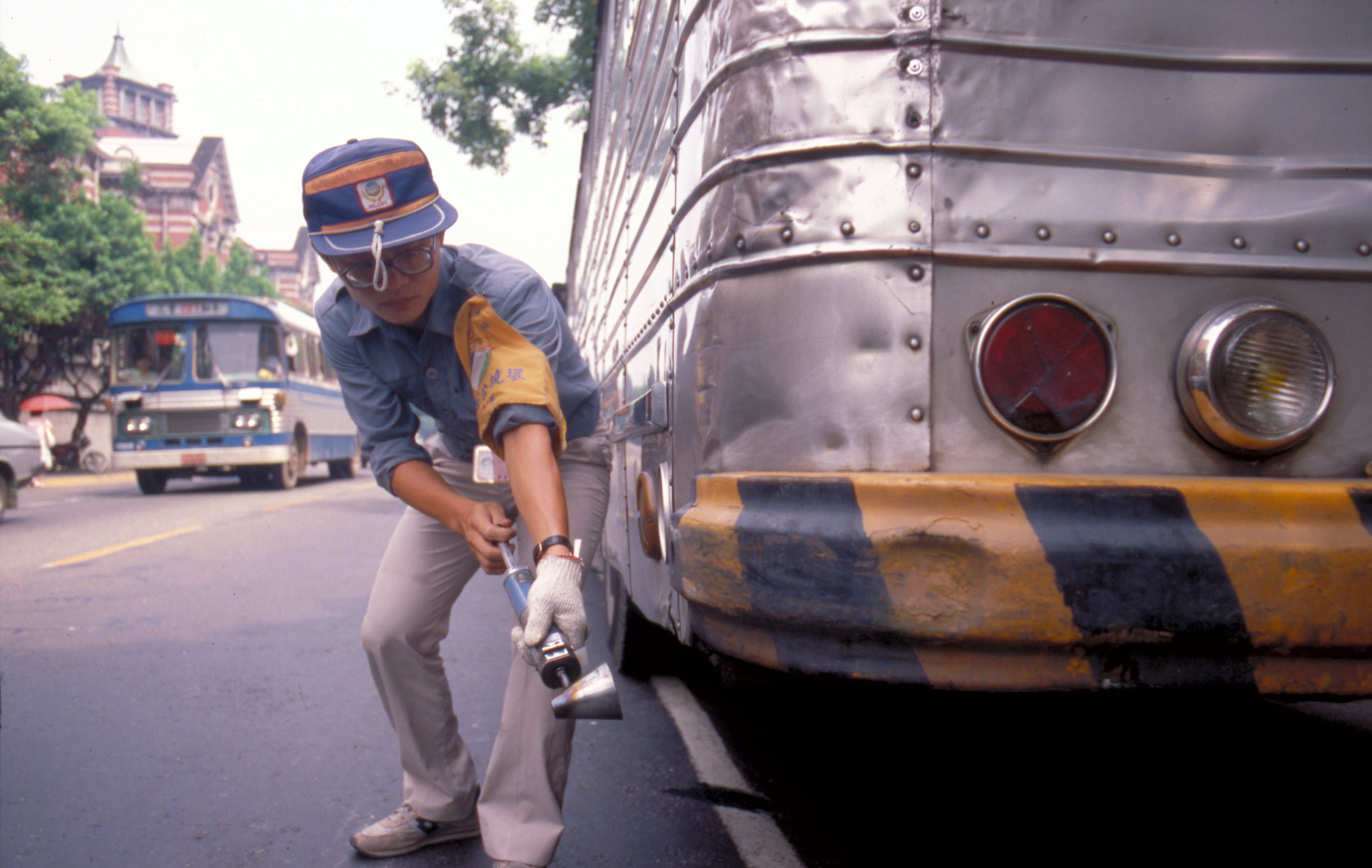 為維護空氣品質,環保局的工作人員在街上抽驗汽車的排氣情形。
