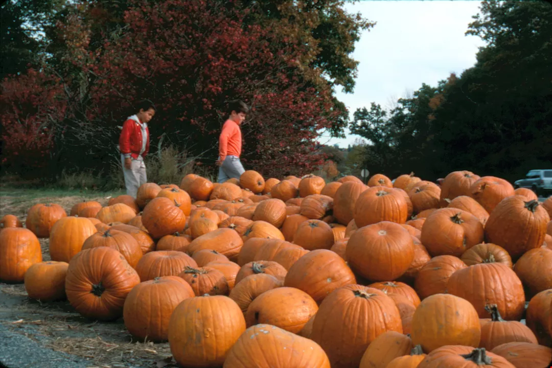 萬聖節前,路旁堆滿了大南瓜,留學異國的學子也不免停下車來買個回家應景。(吳先琪提供)