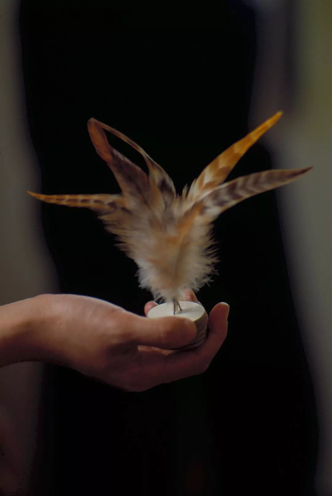 太軟、太硬、太稀,經熱水燙過(會失去彈性)的雞毛都不適合作毽,最好的是直接從活公雞尾巴抓下來的毛;毽盤也有學問,平圓的最好,踢起來穩、平,又不痛。