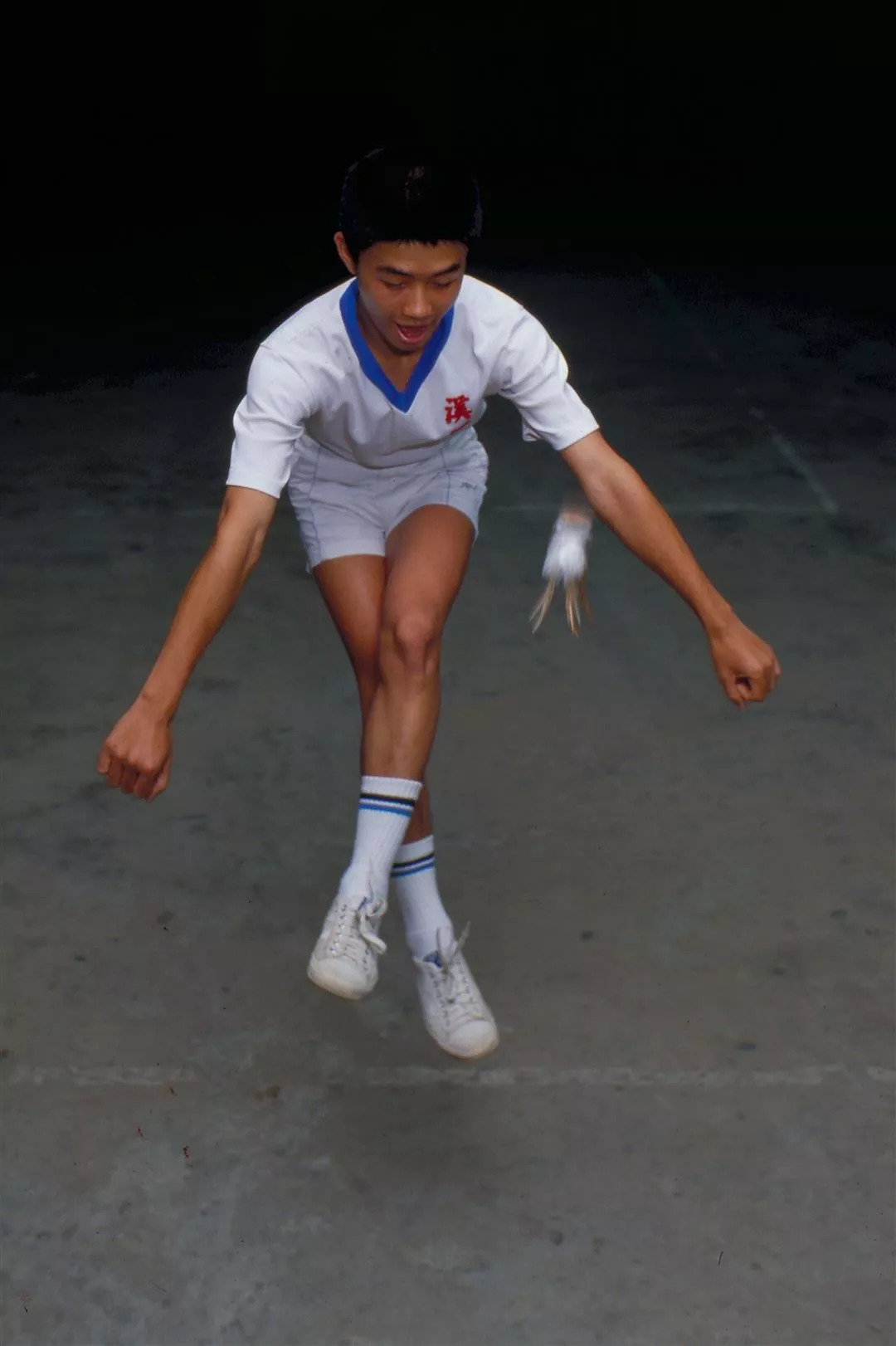 圖3.:漂亮的「大武」動作——剪,要在雙腿彈跳的瞬間,判斷毽子的落點,難度極高。(張良綱)