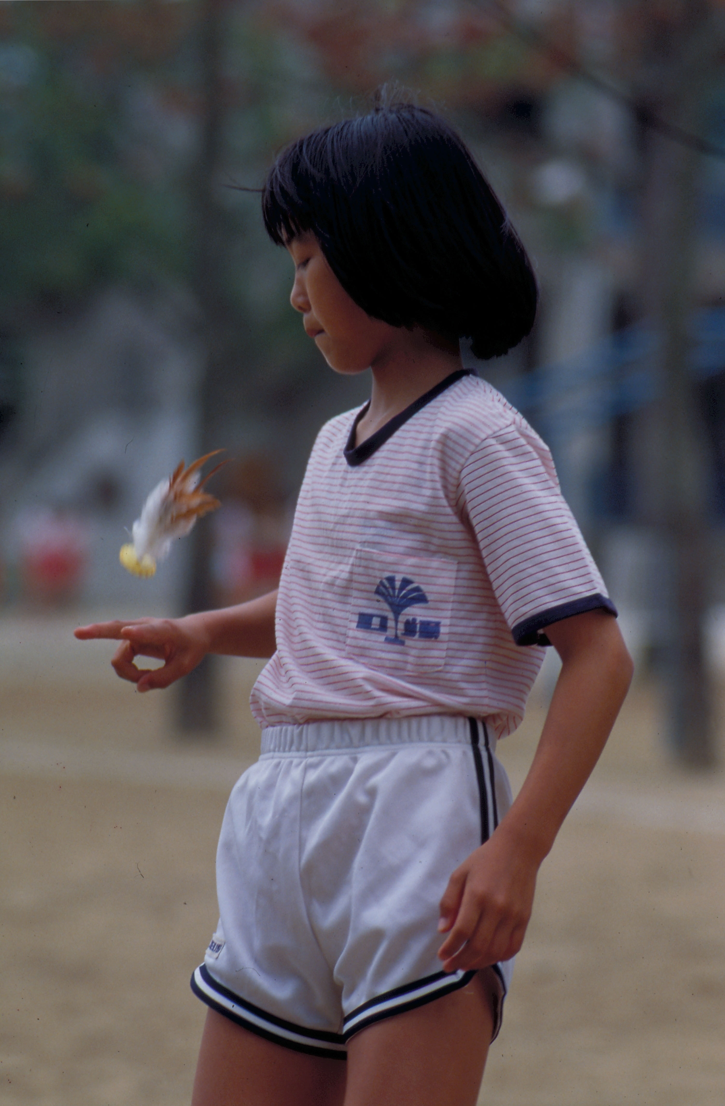 在「毽子國小」——有八十年歷史的溪口國民學校,下課時間,教室走廊和操場上,都是追逐毽子的身影。