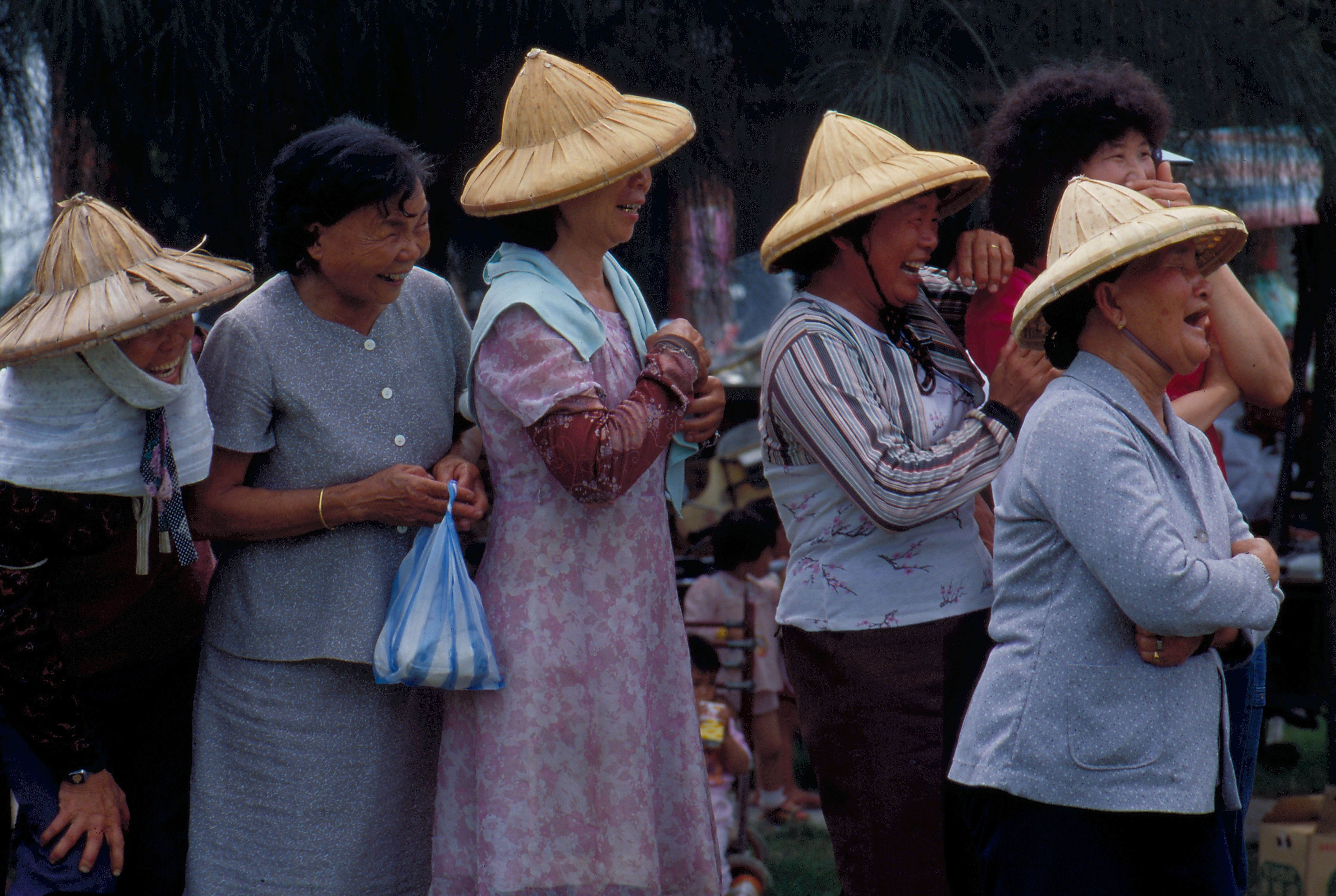 圖1.2.:溪口鄉社區運動會的「父子同心」踢毽比賽,上場的「父子檔」緊張,旁觀的媽媽們也十分「進入情況」,不時笑了開來。(張良綱)