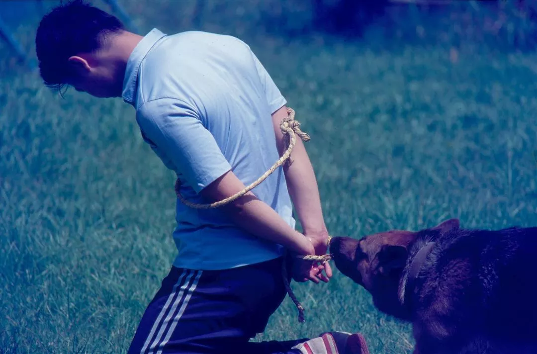圖3:受過訓練的犬只,會咬斷繩索,替主人解危。(楊永山/鄭元慶)