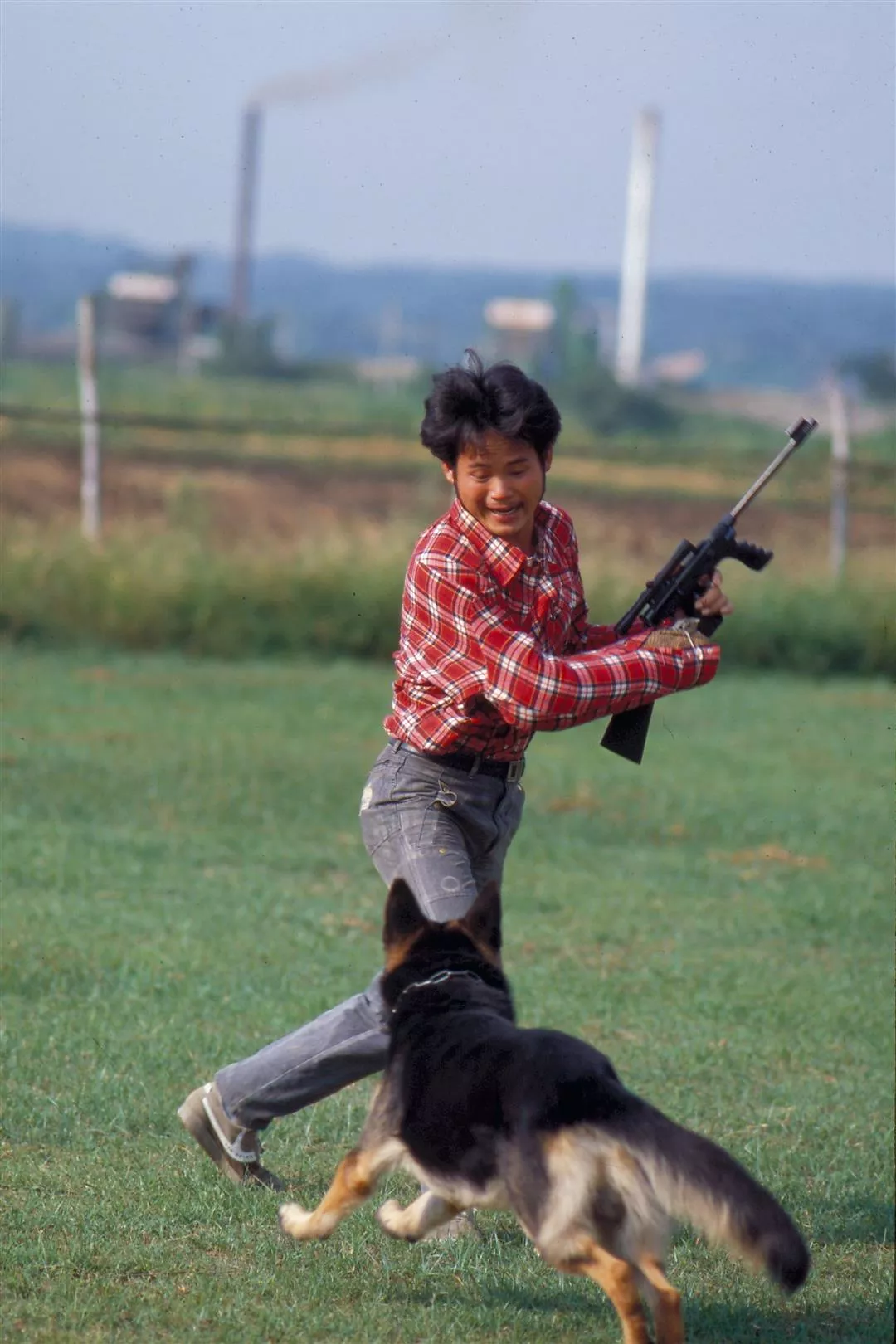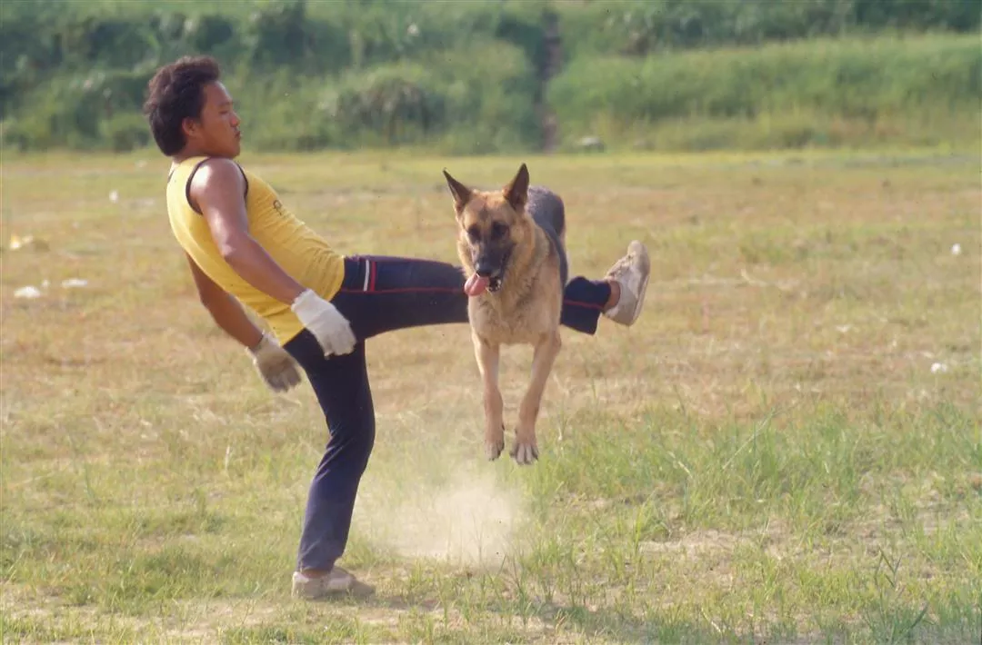 訓練有素的犬只,面對手持槍枝的敵人毫不畏懼。(楊永山/鄭元慶)