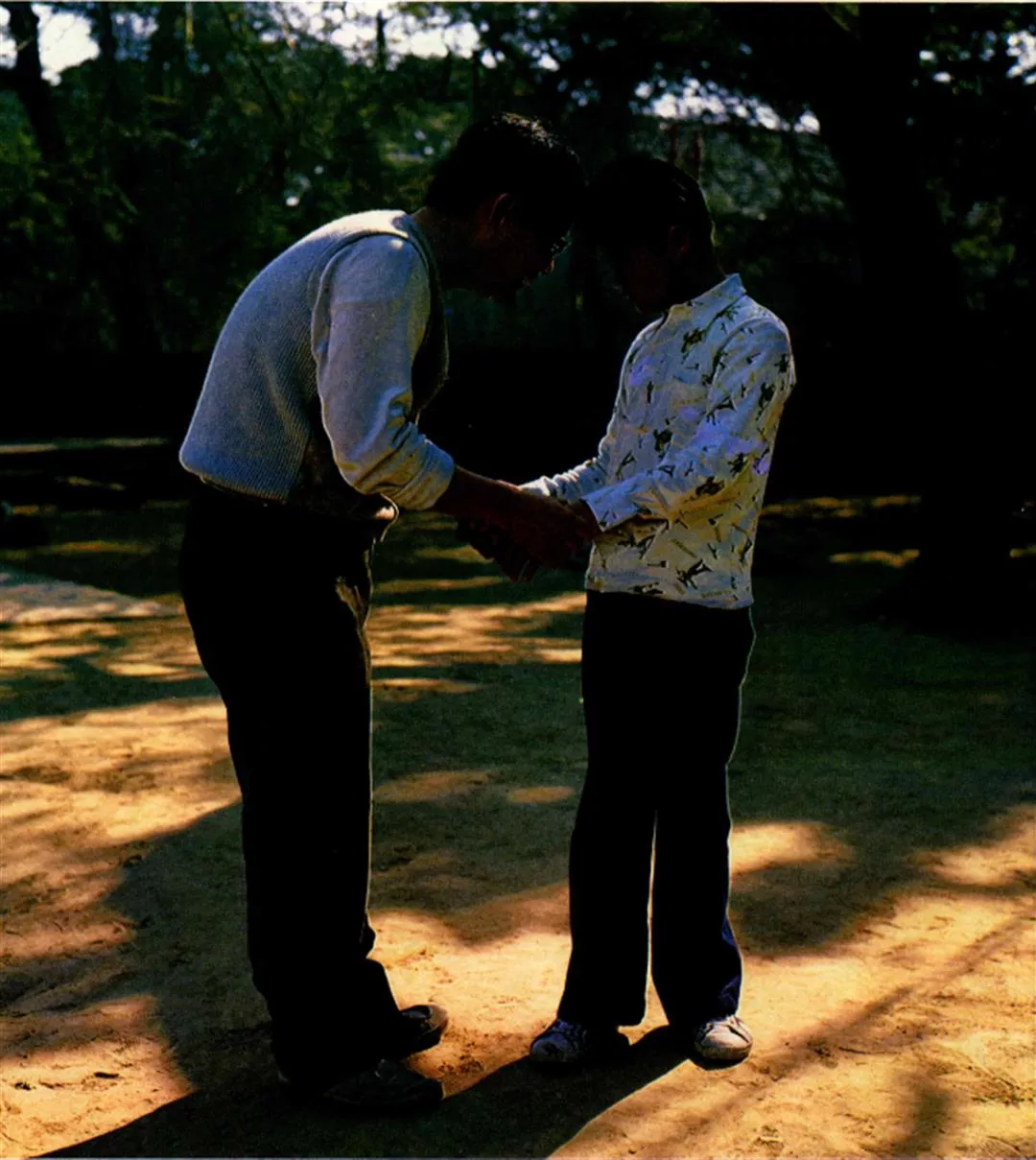 在這麼熱的天氣裡,跑那麼老遠,只為了教這一群連黑色都不認識的孩子畫圖,也許他們一輩子也畫不出一張完整的圖。但是他說:「我並不期望孩子能畫出一張完整的圖,只要求這種教學法能讓他們把他們還有的部分潛能發揮出來,我們就滿足了。我讓他們手沾漿糊,蹲在地上畫圖,主要是要他們有活動全身的機會。手指尖是神經最敏感的地方,它會刺激腦神經發育,使他們滿足觸覺的快感,我們就達到目的了。」