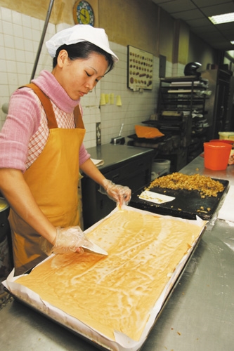目前還在新竹工研院服國防替代役的楊孟祥回憶,從小,每當同學知道他家開糕餅店,都會露出羨慕垂涎的表情,但也許因為他對糕餅香早已習以為常,加上逢年過節一定得幫忙,實在無法體會幸福從何而來?直到離家到台南成功大學唸書,一直找不到好吃的糕餅,才知道原來家鄉滋味最好,有種溫馨感。
