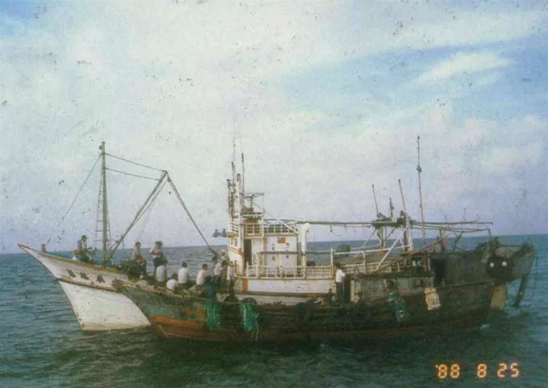 這二艘漁船正「私相授受」,給保七總隊逮個正著。(保七總隊提供)