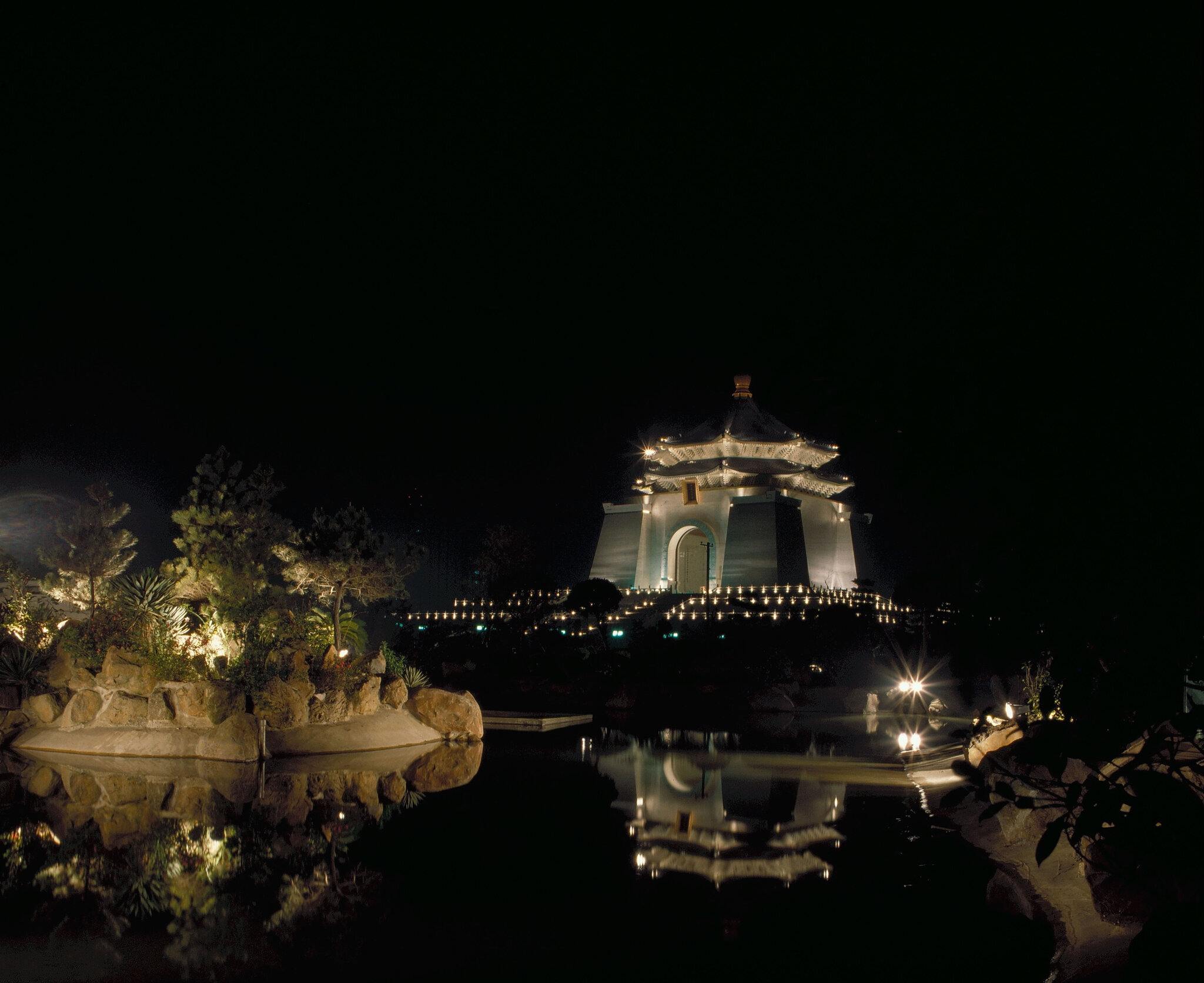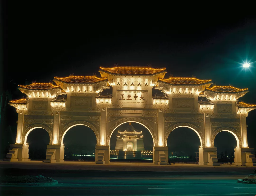 在紀念堂八角形雙層飛簷和正牌樓上,裝設了許多強烈燈光,入夜後,若燈光全開,整個紀念堂燦爛輝煌。
