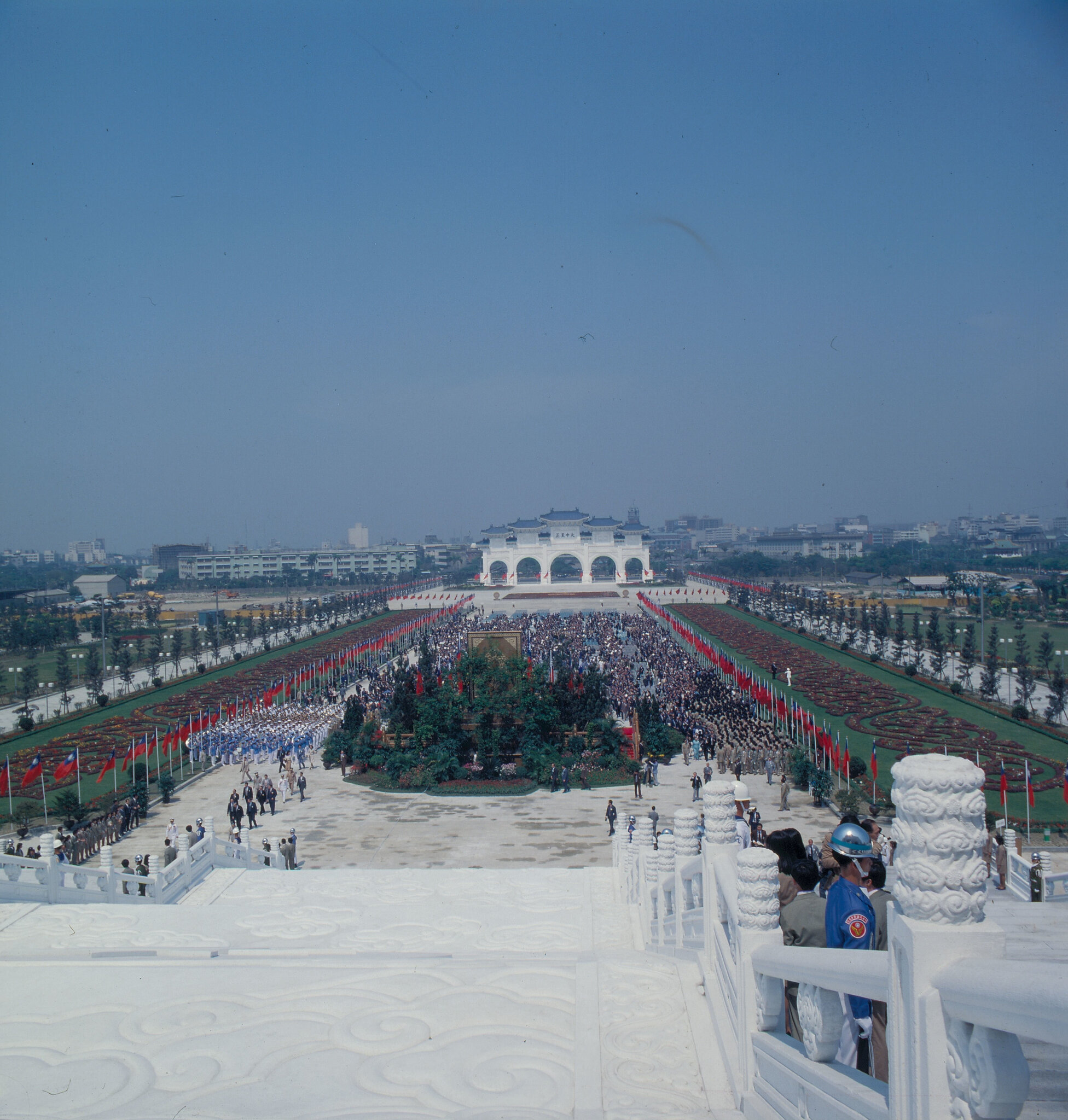 四月四日上午,「中正紀念堂落成典禮與先總統蔣公逝世五週年紀念大會」,在中正紀念堂前的瞻仰大道舉行。