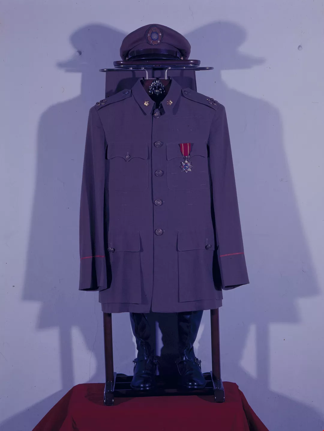 分散在各展視櫥櫃的五、六十座勳章,有國內的、有各國政府贈送的,有項鍊式的、有獎牌式的,琳琅滿目,光輝奪目。還有指揮刀、統帥儀仗、北伐抗戰剿匪的旗幟……,每一件都代表著蔣公的豐功偉業,和他對全人類自由和平的貢獻。