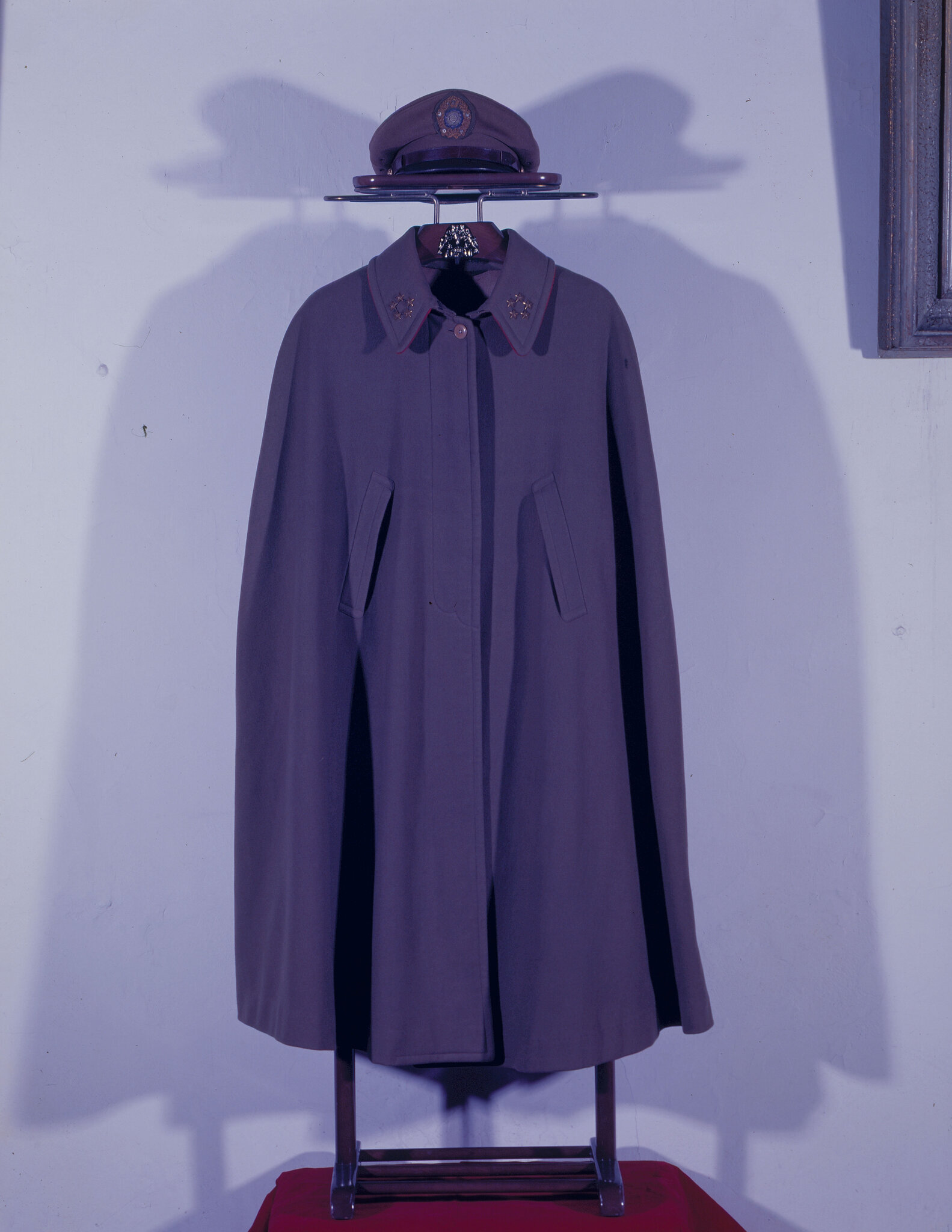 尤其是那件黑絨大氅(披衣),從抗戰時期開始,伴著蔣公渡過三十多年的歲月,領口已泛白,亦可見到縫補的痕跡。