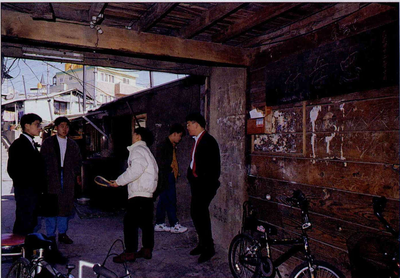 但房子真是小。推開家門,不到一公尺深的玄關擺了台瓦斯爐和水槽充當廚房,再拉開紙門,五坪不到的炕上,扣去衣櫃、家電的位置,大概就剩三個人比肩而坐的寬度。這方空間,白天是客廳、中午是飯廳,晚上拉出舖被是臥室。「很難想像吧!在韓國第二大城市釜山,還有這樣的地方」,和先生在草梁開一間書畫教室的孫元玲感嘆,接著又說:「連我住在這兒的,到今天還是無法理解,這樣一個舖,怎麼有人家可以住下十口人?」