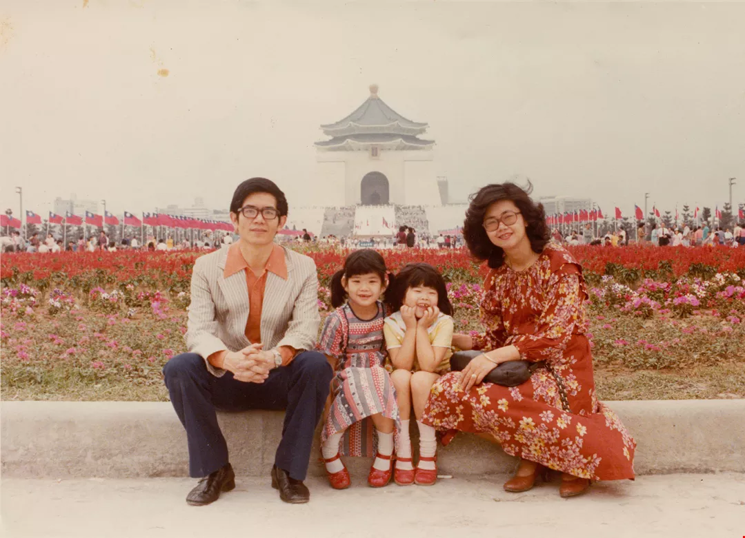 余思宙全家在中正紀念堂前留影。(魏嬡)
