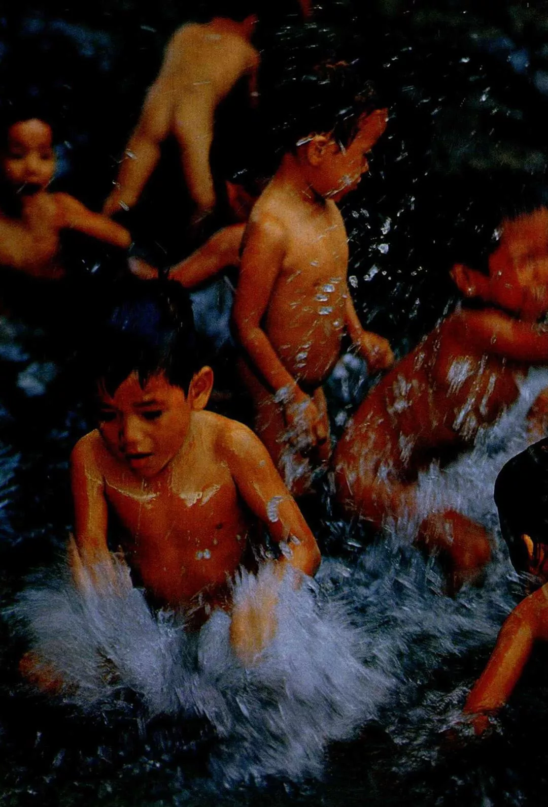 每週二、五下午,如果天氣晴朗,老師會帶小朋友到紅頭溪洗澡。小朋友都高興地在水中打水仗。(楊永山.謝嘯良)