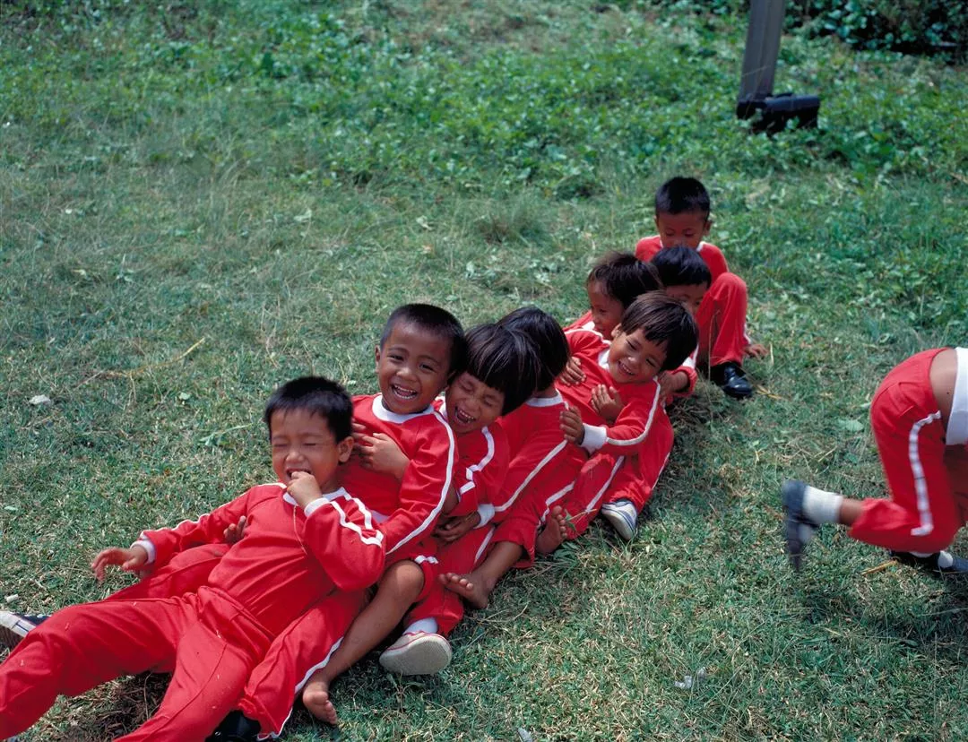 孩子都喜歡膩著他,抓住他的雙手,然後把雙腳攀在他的身上。有時候,好幾個一起黏上來。可是林茂安只要吹聲哨子,說: