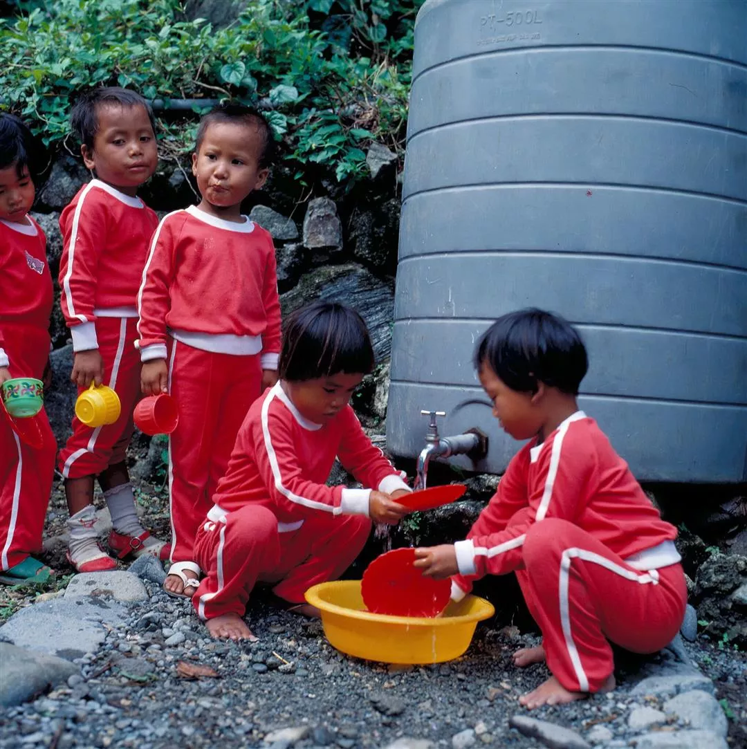 每個星期二和星期五的下午,如果天氣晴朗,老師會帶小朋友散步到紅頭溪洗澡。小朋友只要看到溪水,就會自動把衣服脫個精光,然後嘻嘻哈哈的跑到水裏打水仗,用水把老師潑得眼睛都睜不開。比較大的孩子自己動手洗,小的則由老師洗。等到老師幫大家把衣服穿好,已是日暮西山。小朋友似乎有永遠用不完的精力,但老師卻已疲憊不堪。