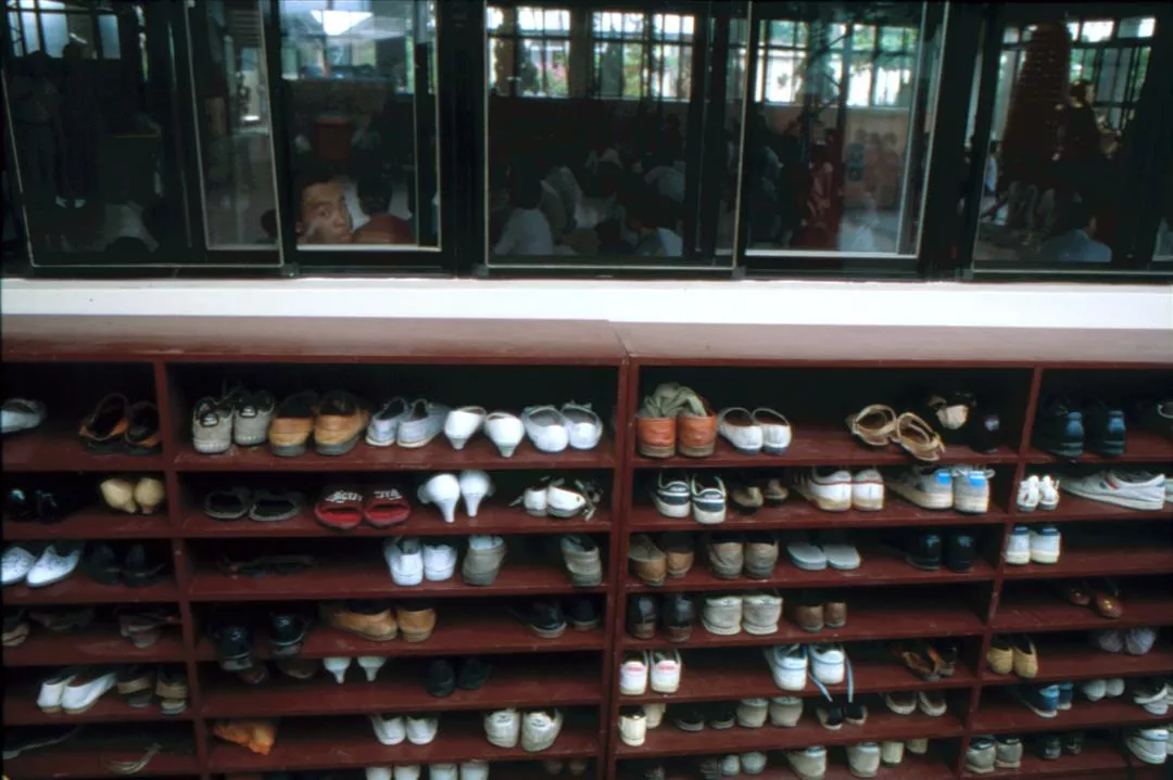 一雙雙鞋子,彷彿說明眾生與佛結緣的一段故事。(邱勝旺)