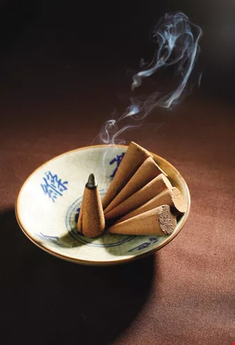 印度傳說如此,中國的正史又另有說法。根據最古老史書《尚書》的記載:「至治馨香,感于神明。」在二、三千年的上古時期,中國就有「焚香以降神」的祭儀,祭拜時,沒酒、沒肉還無所謂,香是絕對不可缺的。但在秦漢以前,中國設奠焚香以祭天的香,並非今日民間所點燃的香,指的只是香草之類的蘭蕙椒桂而已,一直到晉武帝(西元265∼316年),外國才進貢「異香」,可供焚燒或配戴以辟邪逐疫,更可入藥做為養身保健之用。