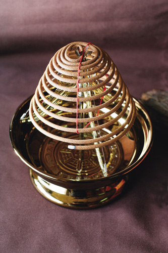無論是香塔(上)、線香還是香環,點燒出的裊裊煙香,令人神清氣爽,心中的塊壘在無形中也隨煙飄散。
