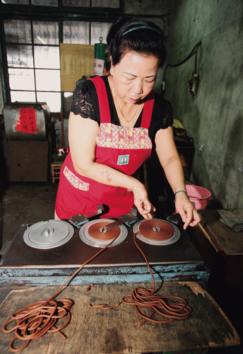 施家以檀香和沉香為主要材料,再加上二十多種天然獨門配方研製出來的香,完全不含化學香精,沒有致癌的疑慮。圖為香環的製造過程。