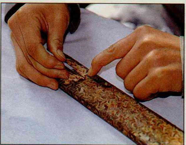 刀劍上的花紋鋼,中(下圖)、西各有特色與巧妙。(薛繼光)