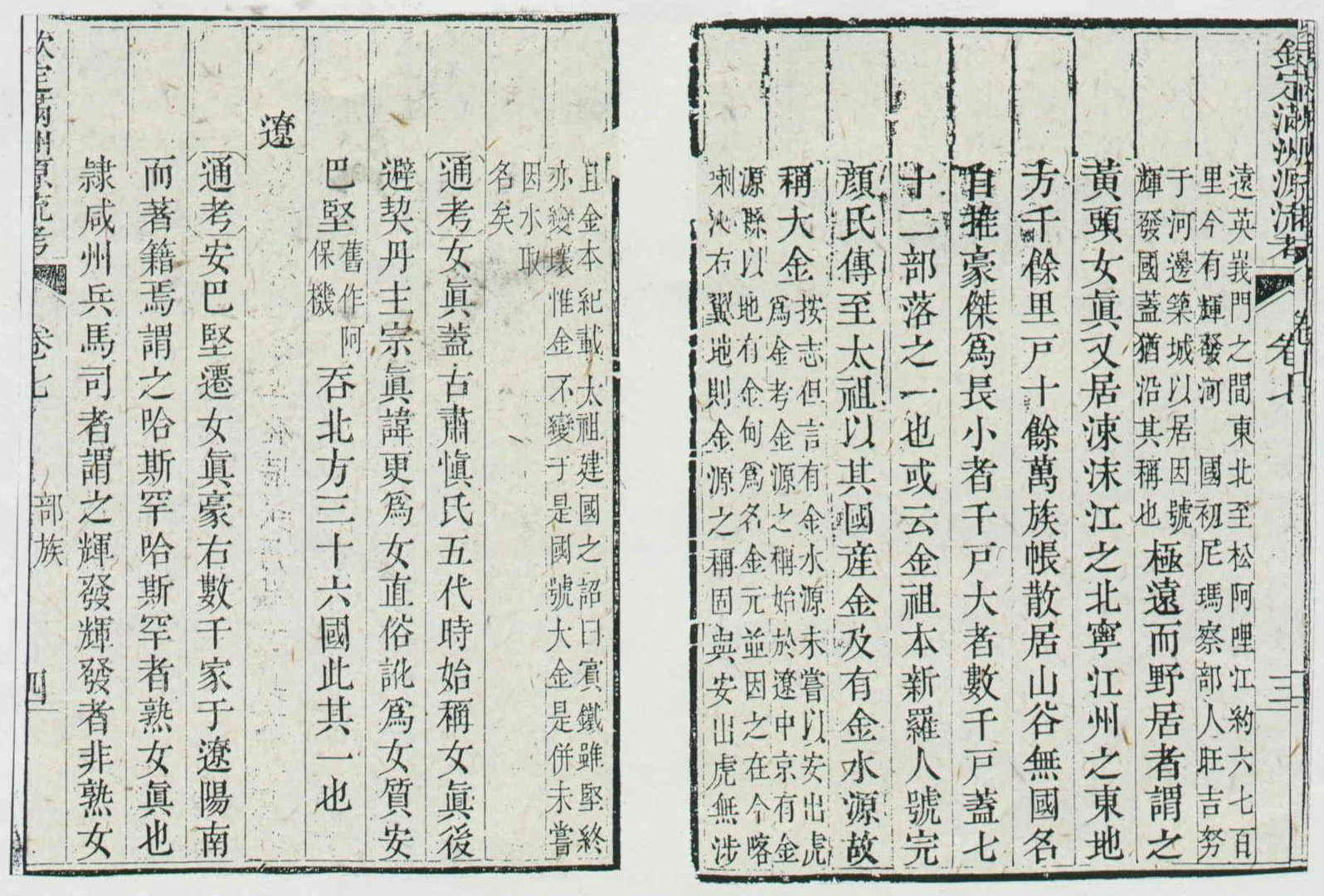 乾隆欽定的《滿洲源流考》清楚記載著女真的由來。(張良綱)