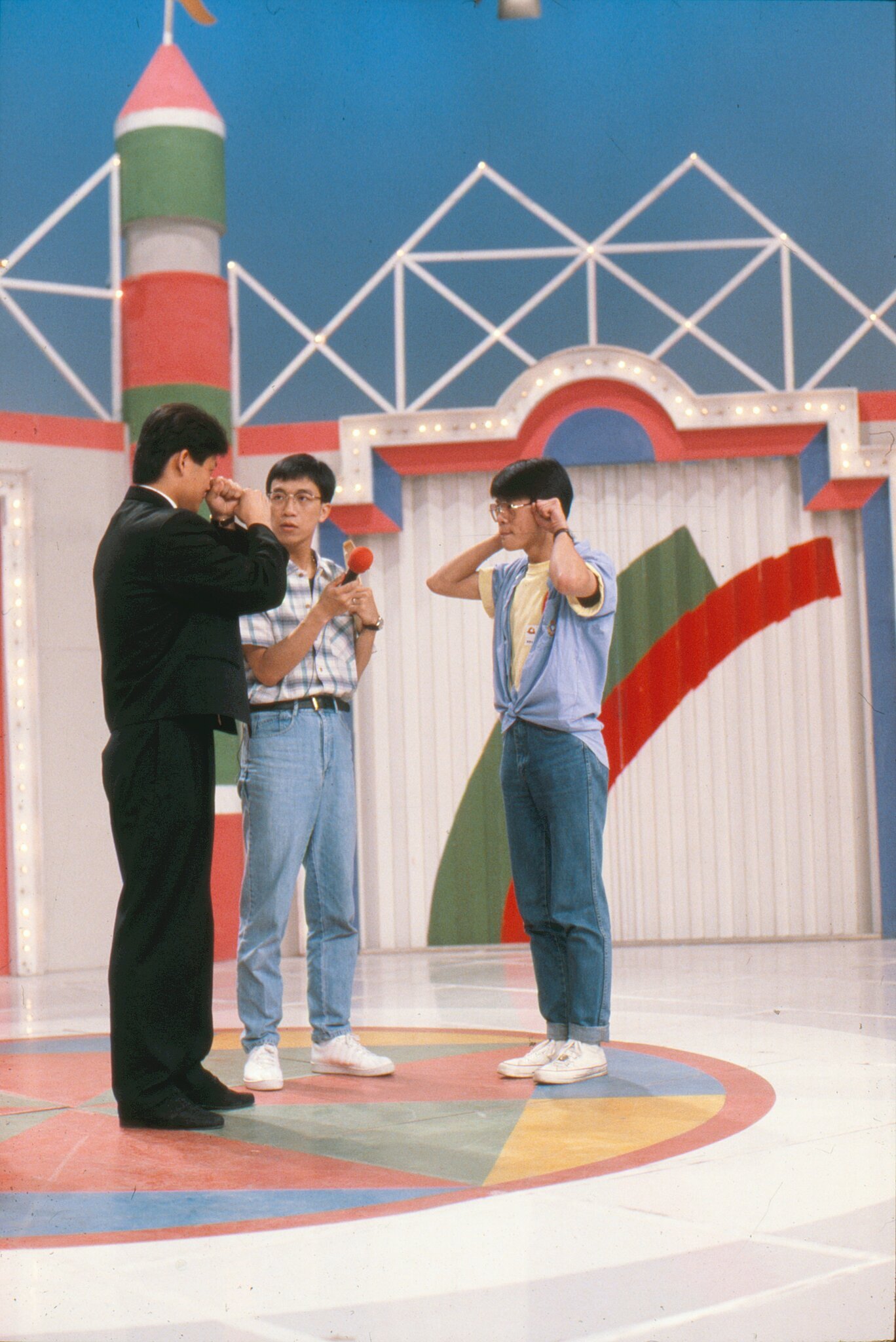 電視節目「好彩頭」以邀請特別來賓與現場觀眾划拳做噱頭,頗受青少年歡迎。圖中划的是不說話的「啞吧拳」。(黃麗梨)