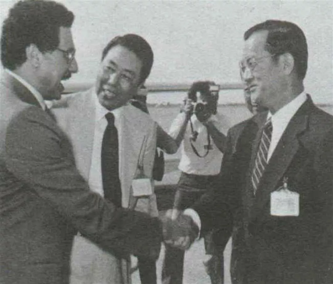 民國六十四年出使薩爾瓦多時,連戰與薩國總統及副總統合影。(歐陽芷汀)