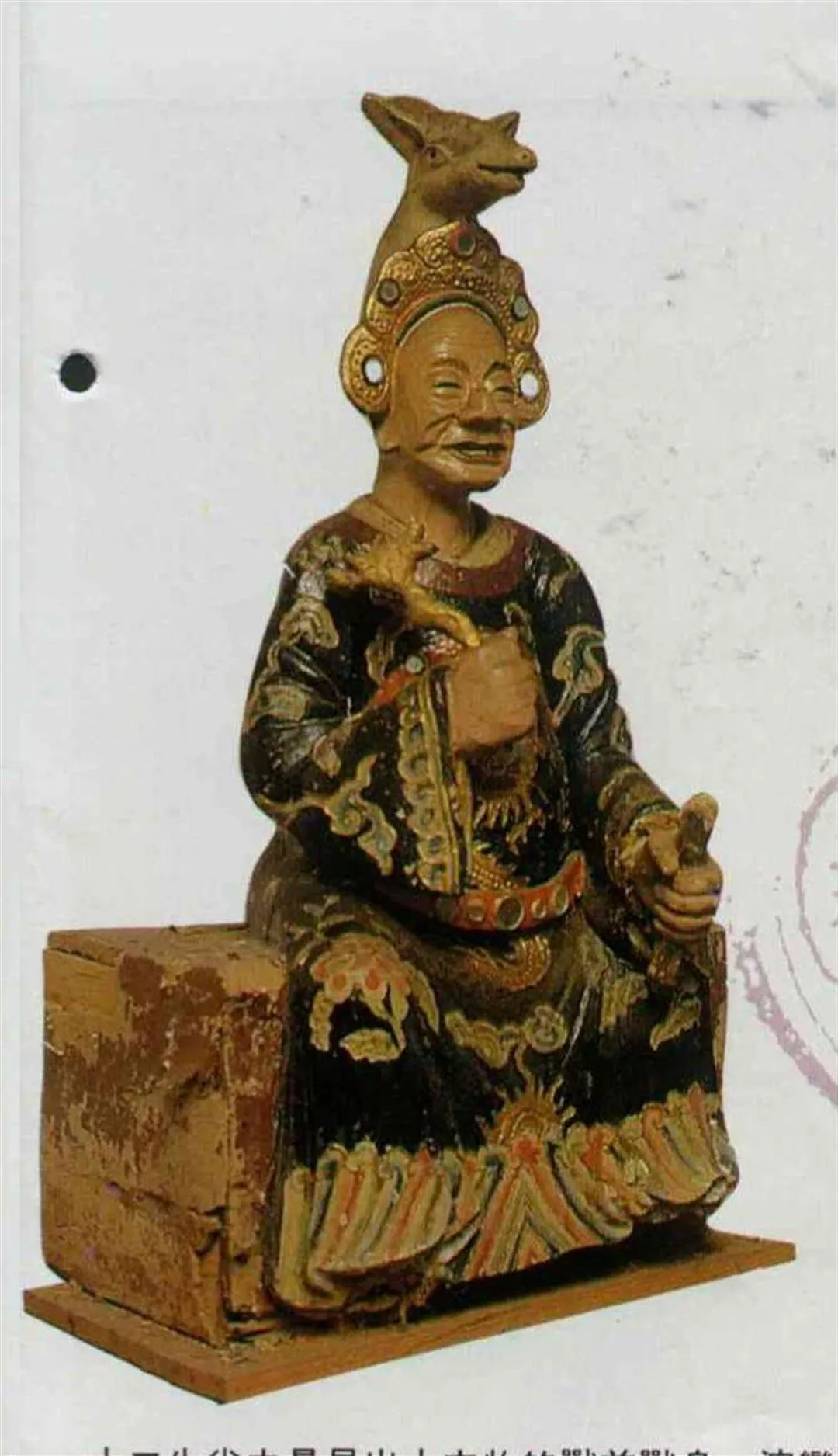 十二生肖由最早出土文物的獸首獸身,演變到五代後,出現了人首人身、頭戴獸冠的造型。圖為泥塑的羊支獸。(李躬恆提供/黃麗梨攝)